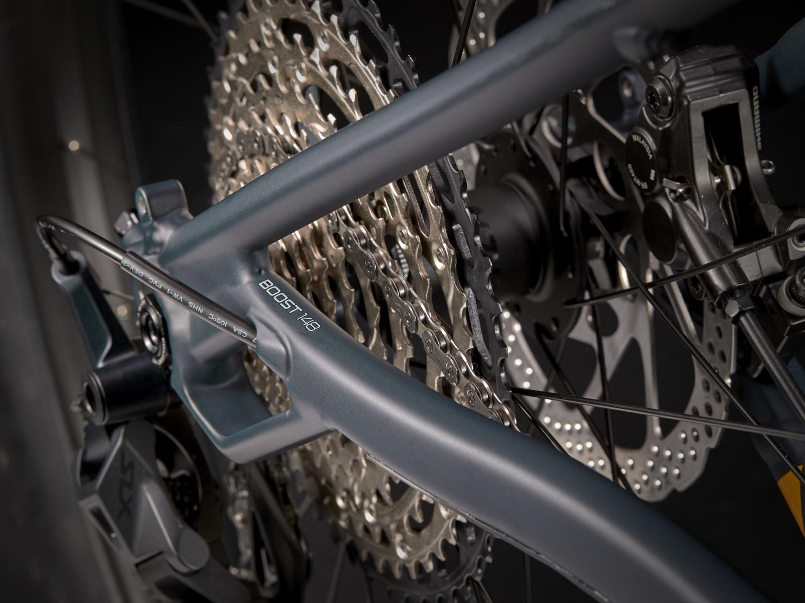 Rahmen: Alpha Platinum Aluminium, konisches Steuerrohr, interne Zugführung für Schaltung und Variosattelstütze, eigenentwickelte Gepäckträgeraufnahmen, horizontal verschiebbare Ausfallenden, Boost148, 12 mm Steckachse