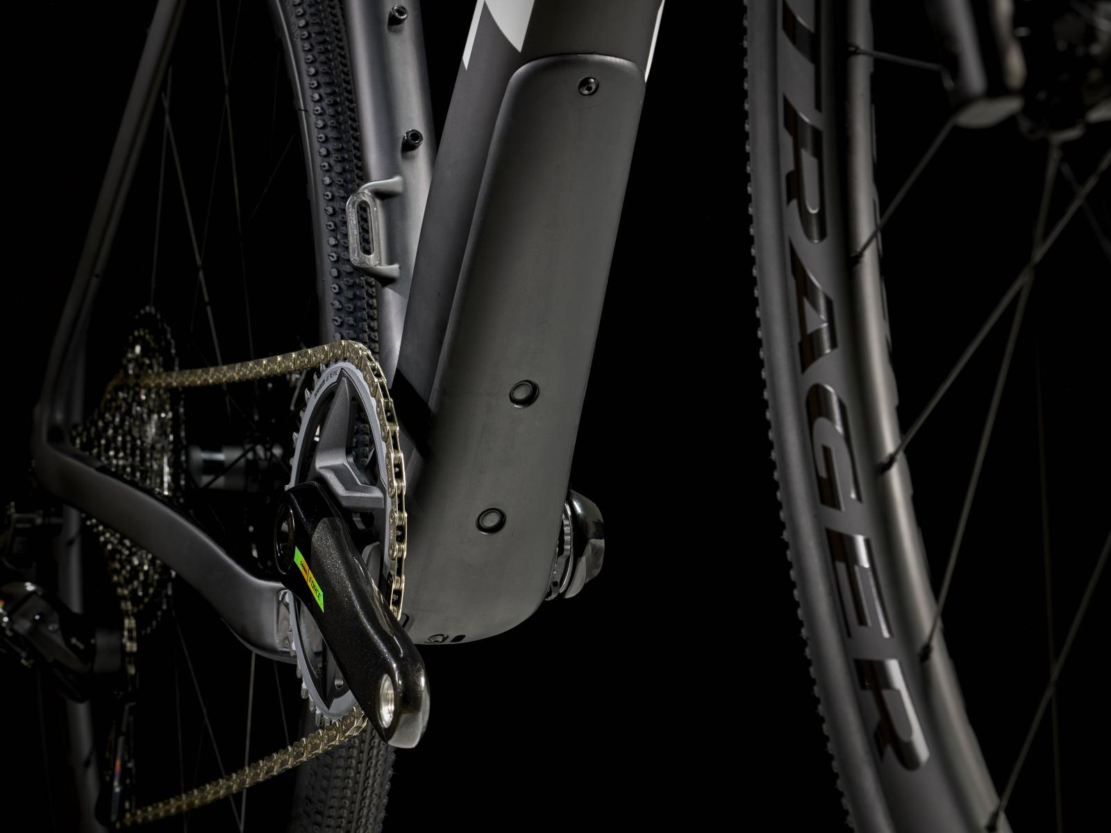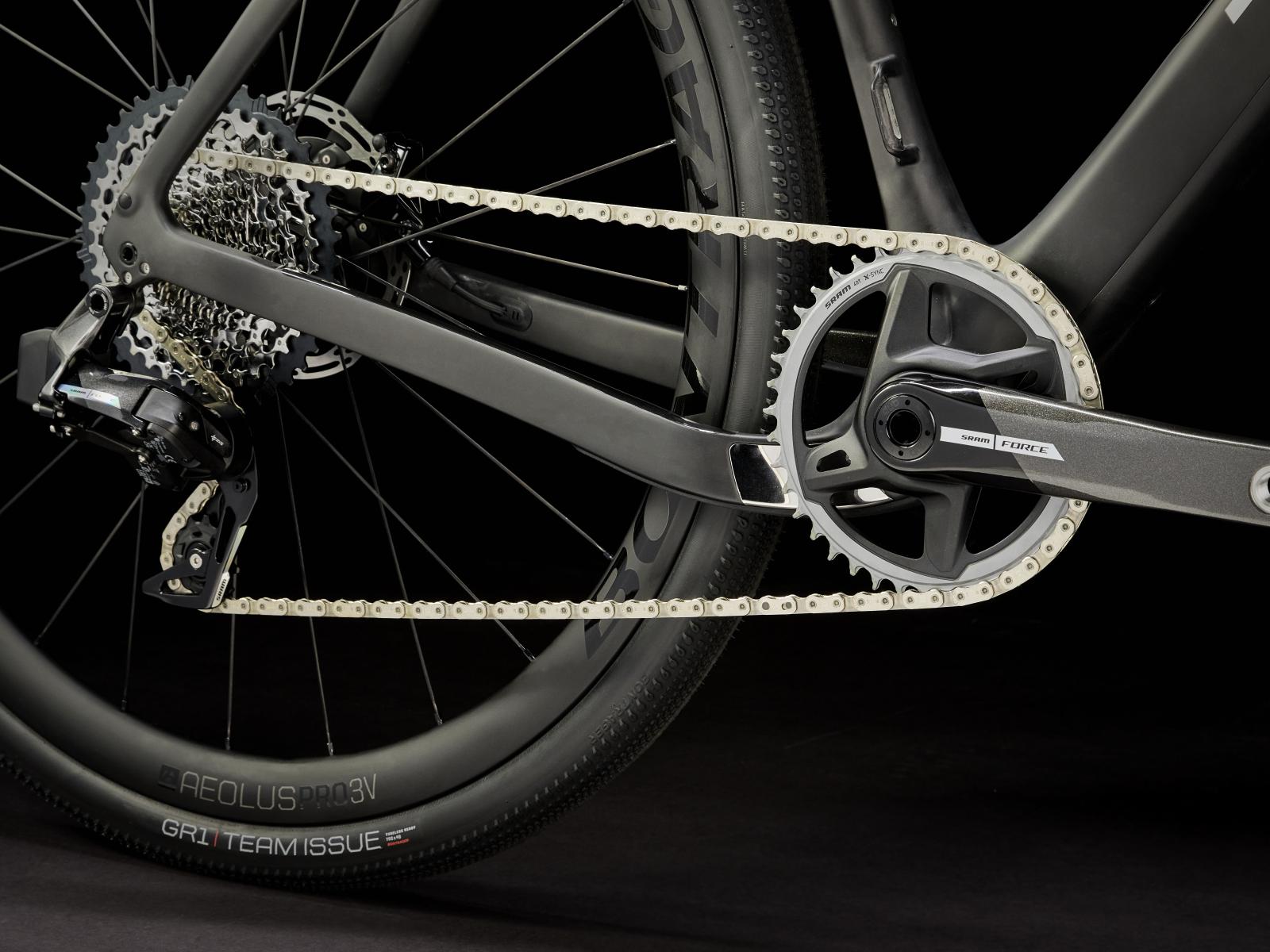 Einen Rahmen aus 500 Series OCLV Carbon mit gedämpftem hinterem IsoSpeed und Carbon Armor, eine progressive Geometrie, die bei hohen Geschwindigkeiten stabil und auf Anstiegen effizient ist, ein internes Rahmenstaufach, verborgene Züge, die deinen Taschen nicht in die Quere kommen, integrierte Aufnahmepunkte für eine Rahmentasche und Gepäckträger- und Schutzblechösen. Außerdem bekommst du eine Carbongabel, SRAMs drahtlosen, elektronischen Force XPLR AXS D2 1x12-Antrieb mit breitem Übersetzungsbereich und Bontragers Aeolus Pro 3V-Laufräder aus OCLV Carbon. Der Rahmen nimmt sogar eine Variosattelstütze auf, damit du auf Abfahrten