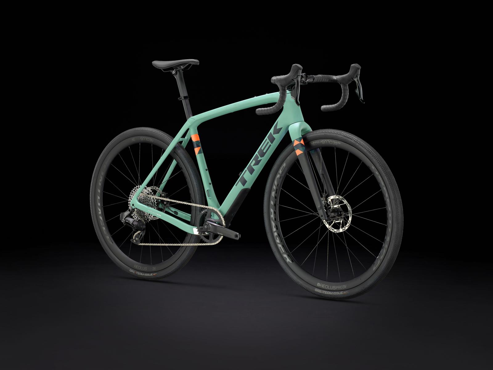 Einen Rahmen aus 700 Series OCLV Carbon mit IsoSpeed und Carbon Armor und mit einer progressiven Geometrie, die bei hohen Geschwindigkeiten stabil und auf knackigen Anstiegen effizient ist. Dazu gibts ein internes Staufach, verborgene Züge, die deinen Taschen nicht in die Quere kommen, und integrierte Befestigungselemente für eine Rahmentasche und für Schutzbleche. Außerdem bekommst du eine Carbongabel, SRAMs drahtlosen, elektronischen Rival AXS 1x12-Antrieb mit breitem Übersetzungsbereich, Bontragers Aeolus Pro 3V-Laufräder aus OCLV Carbon und breite Gravelreifen im Format 700 x 40C für noch mehr Stabilität und Traktion. Der Ra