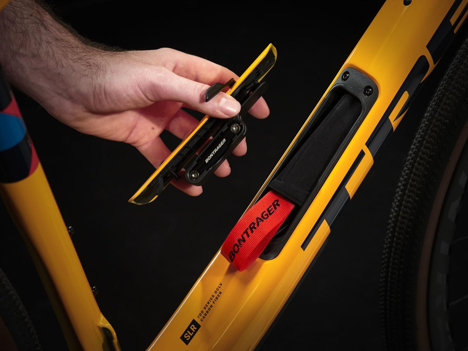 - Ein schlankes, im Rahmen integriertes Staufach ermöglicht die Unterbringung von Werkzeug und Ausrüstung.