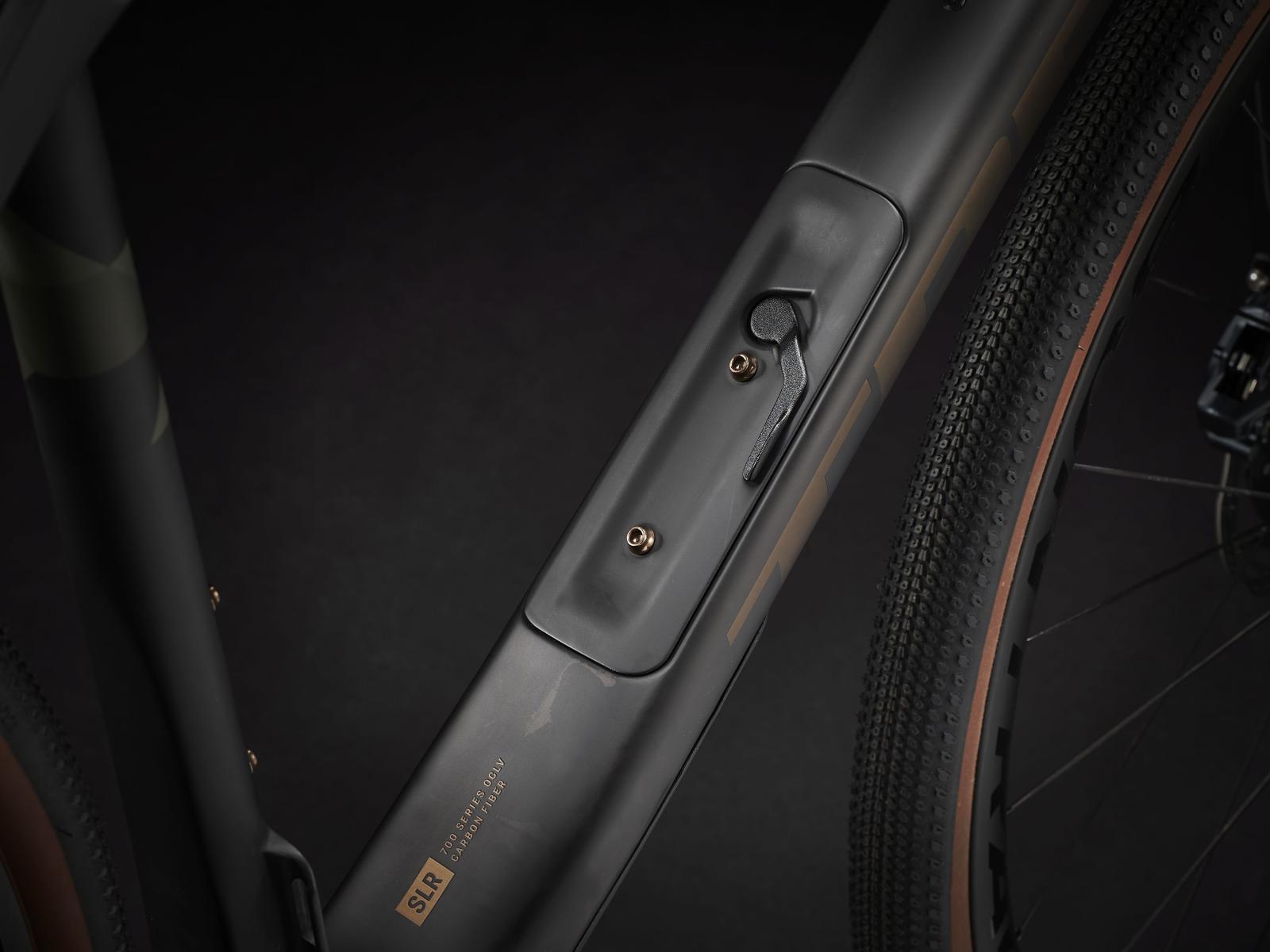 - Ein schlankes, im Rahmen integriertes Staufach ermöglicht die Unterbringung von Werkzeug und Ausrüstung.
