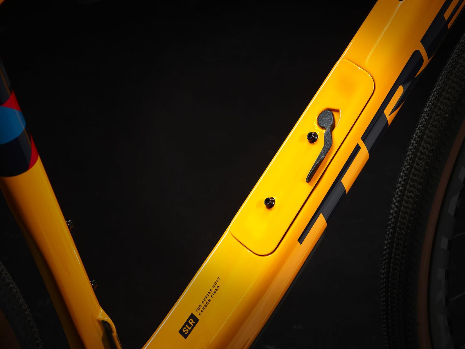 - Ein schlankes, im Rahmen integriertes Staufach ermöglicht die Unterbringung von Werkzeug und Ausrüstung.
