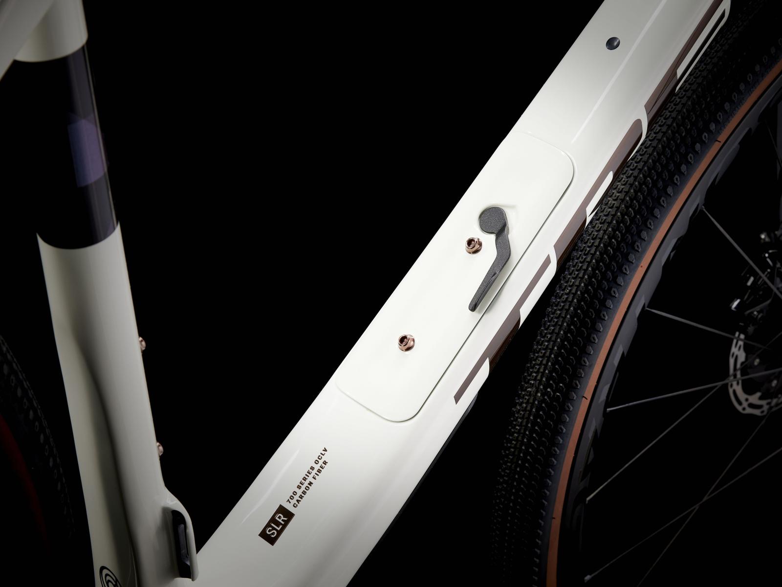 Einen Rahmen aus 700 Series OCLV Carbon mit vorderem IsoSpeed und Carbon Armor, eine progressive Geometrie, die bei hohen Geschwindigkeiten stabil und auf knackigen Anstiegen effizient ist, ein internes Staufach, verborgene Züge, die deinen Taschen nicht in die Quere kommen, und integrierte Aufnahmepunkte für eine Rahmentasche und Schutzbleche. Dazu bekommst du eine Carbongabel, SRAMs drahtlosen, elektronischen Force XPLR AXS D2 1x12-Antrieb mit breitem Übersetzungsbereich, Bontragers Aeolus Pro 3V-Laufräder aus OCLV Carbon und breite Gravelreifen im Format 700 x 40C für zusätzliche Stabilität und Traktion. Der Rahmen bietet Pla