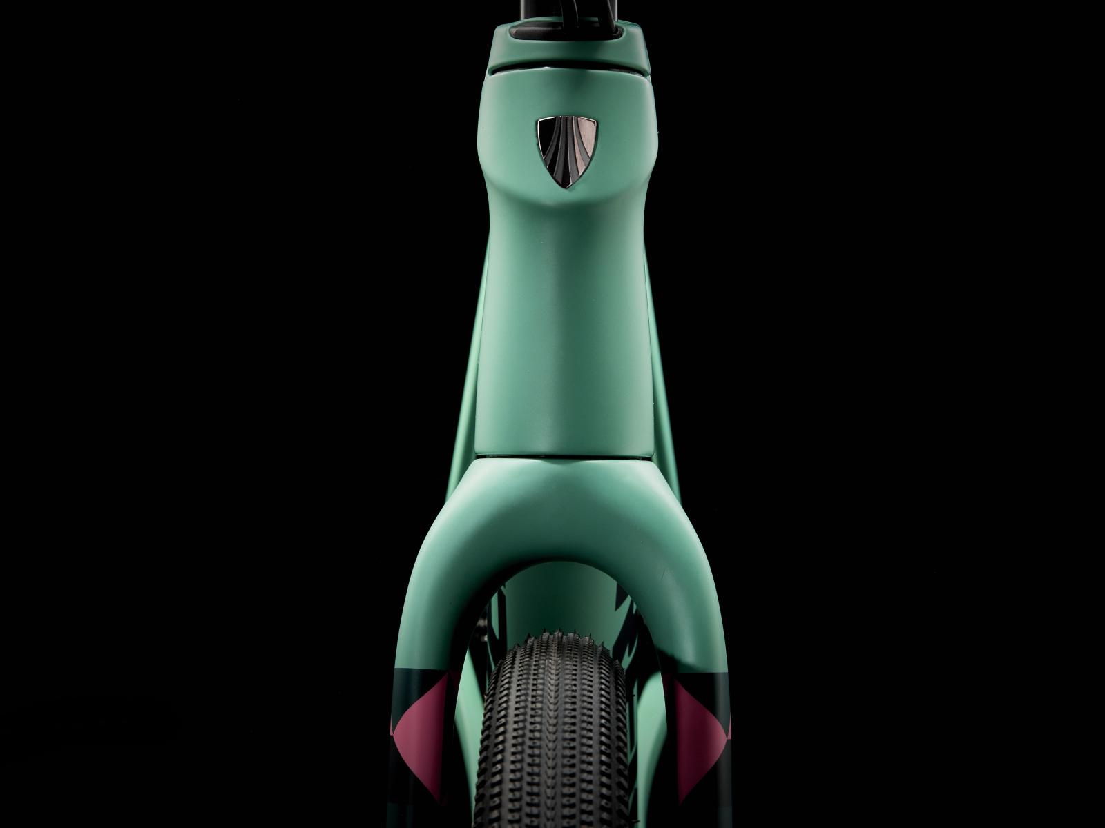 Einen Rahmen aus 700 Series OCLV Carbon mit vorderem IsoSpeed und Carbon Armor, eine progressive Geometrie, die bei hohen Geschwindigkeiten stabil und auf knackigen Anstiegen effizient ist, ein internes Staufach, verborgene Züge, die deinen Taschen nicht in die Quere kommen, und integrierte Aufnahmepunkte für eine Rahmentasche und Schutzbleche. Dazu bekommst du eine Carbongabel, SRAMs drahtlosen, elektronischen Force XPLR AXS D2 1x12-Antrieb mit breitem Übersetzungsbereich, Bontragers Aeolus Pro 3V-Laufräder aus OCLV Carbon und breite Gravelreifen im Format 700 x 40C für zusätzliche Stabilität und Traktion. Der Rahmen bietet Pla