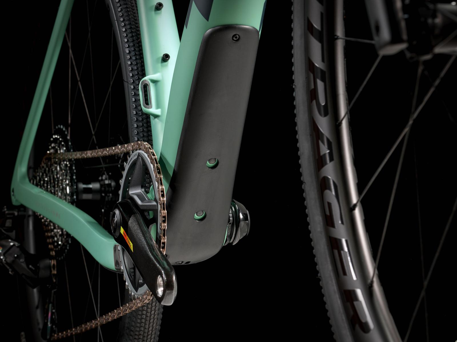 Einen Rahmen aus 700 Series OCLV Carbon mit vorderem IsoSpeed und Carbon Armor, eine progressive Geometrie, die bei hohen Geschwindigkeiten stabil und auf knackigen Anstiegen effizient ist, ein internes Staufach, verborgene Züge, die deinen Taschen nicht in die Quere kommen, und integrierte Aufnahmepunkte für eine Rahmentasche und Schutzbleche. Dazu bekommst du eine Carbongabel, SRAMs drahtlosen, elektronischen Force XPLR AXS D2 1x12-Antrieb mit breitem Übersetzungsbereich, Bontragers Aeolus Pro 3V-Laufräder aus OCLV Carbon und breite Gravelreifen im Format 700 x 40C für zusätzliche Stabilität und Traktion. Der Rahmen bietet Pla