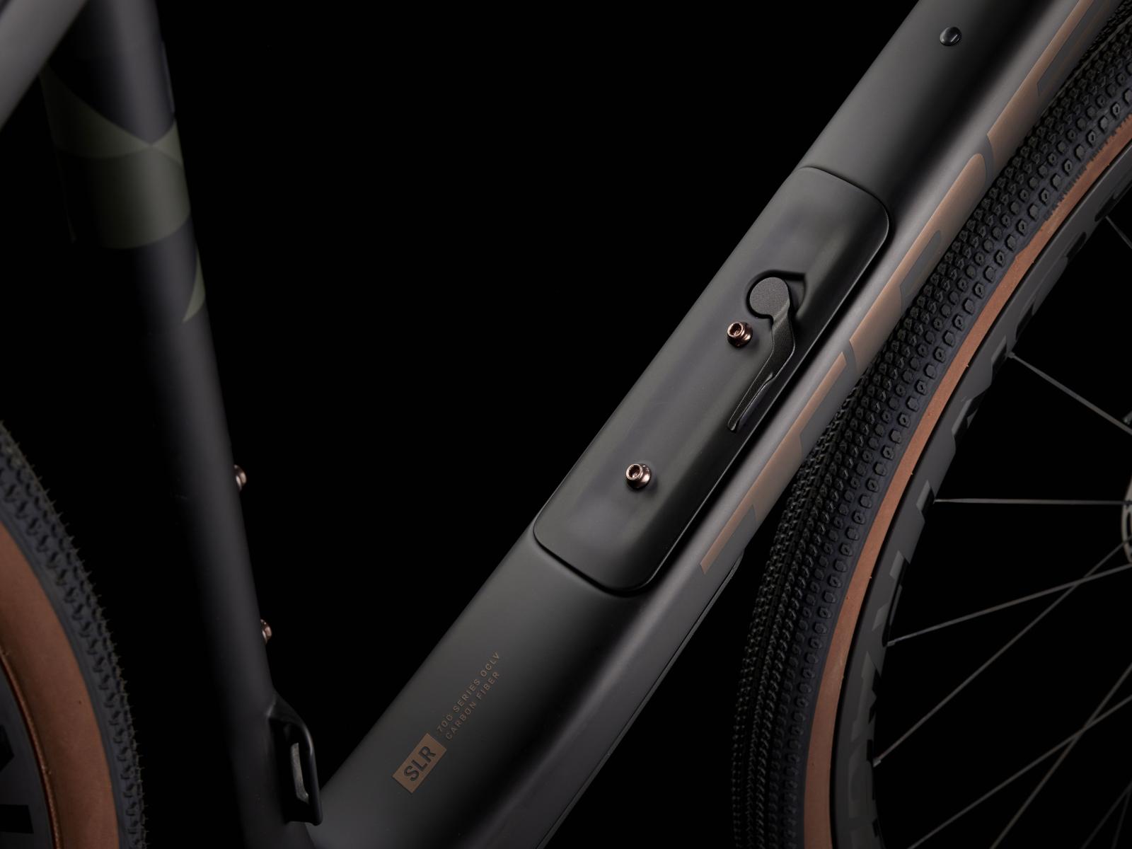 Einen Rahmen aus 700 Series OCLV Carbon mit vorderem IsoSpeed und Carbon Armor, eine progressive Geometrie, die bei hohen Geschwindigkeiten stabil und auf knackigen Anstiegen effizient ist, ein internes Staufach, verborgene Züge, die deinen Taschen nicht in die Quere kommen, und integrierte Aufnahmepunkte für eine Rahmentasche und Schutzbleche. Dazu bekommst du eine Carbongabel, SRAMs drahtlosen, elektronischen Force XPLR AXS D2 1x12-Antrieb mit breitem Übersetzungsbereich, Bontragers Aeolus Pro 3V-Laufräder aus OCLV Carbon und breite Gravelreifen im Format 700 x 40C für zusätzliche Stabilität und Traktion. Der Rahmen bietet Pla