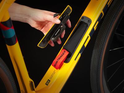 Ein ins Unterrohr integriertes Staufach nimmt Werkzeug und Ausrüstung sicher auf.