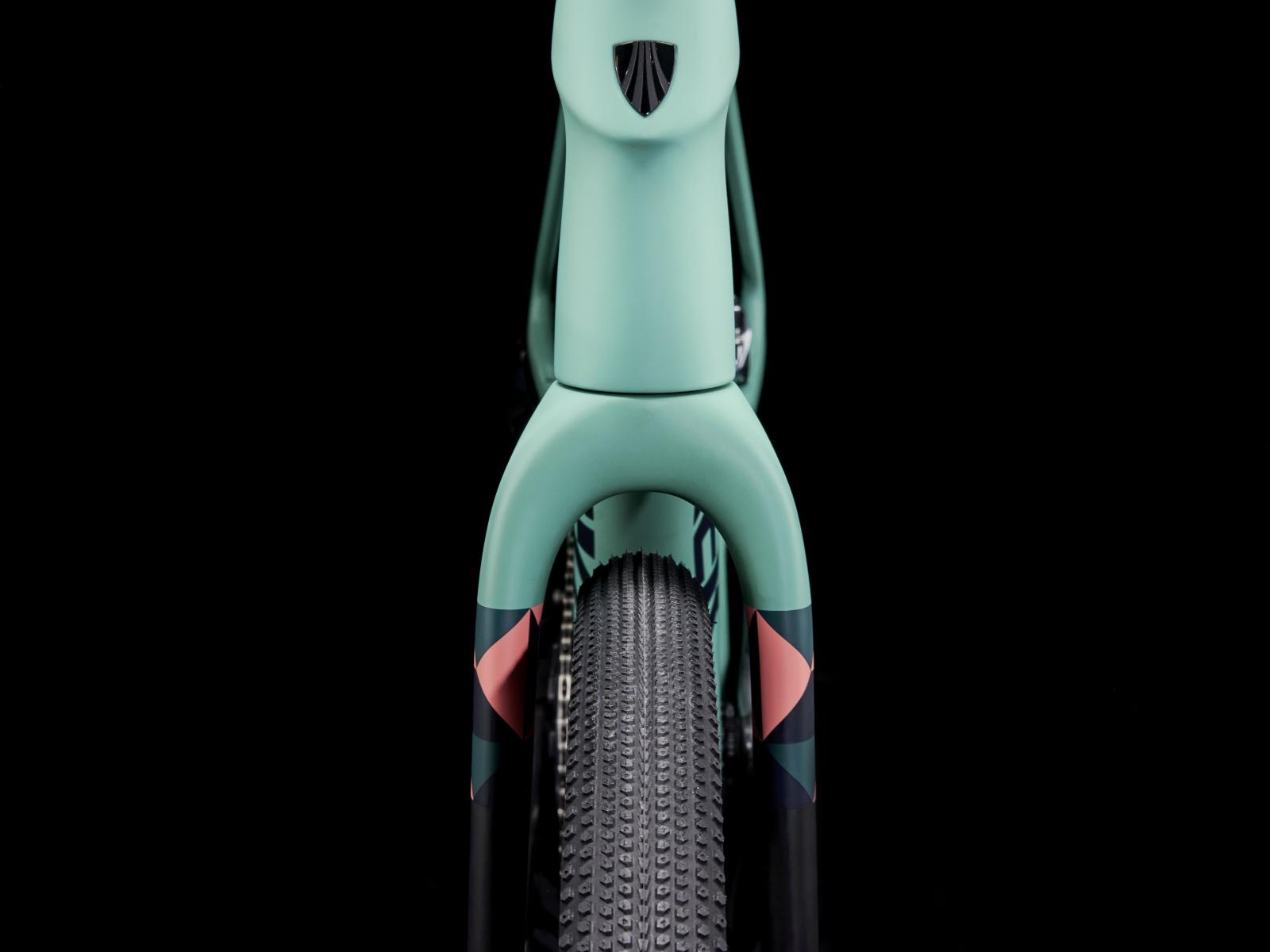 Einen Rahmen aus 700 Series OCLV Carbon mit IsoSpeed und Carbon Armor und mit einer progressiven Geometrie, die bei hohen Geschwindigkeiten stabil und auf knackigen Anstiegen effizient ist. Dazu gibts ein internes Staufach, verborgene Züge, die deinen Taschen nicht in die Quere kommen, und integrierte Befestigungselemente für eine Rahmentasche und für Schutzbleche. Außerdem bekommst du eine Carbongabel, SRAMs drahtlosen, elektronischen RED AXS 1x12-Antrieb mit breitem Übersetzungsbereich, Bontragers Aeolus RSL 37V-Carbonlaufräder und breite Gravelreifen im Format 700 x 40C für noch mehr Stabilität und Traktion. Der Rahmen bietet