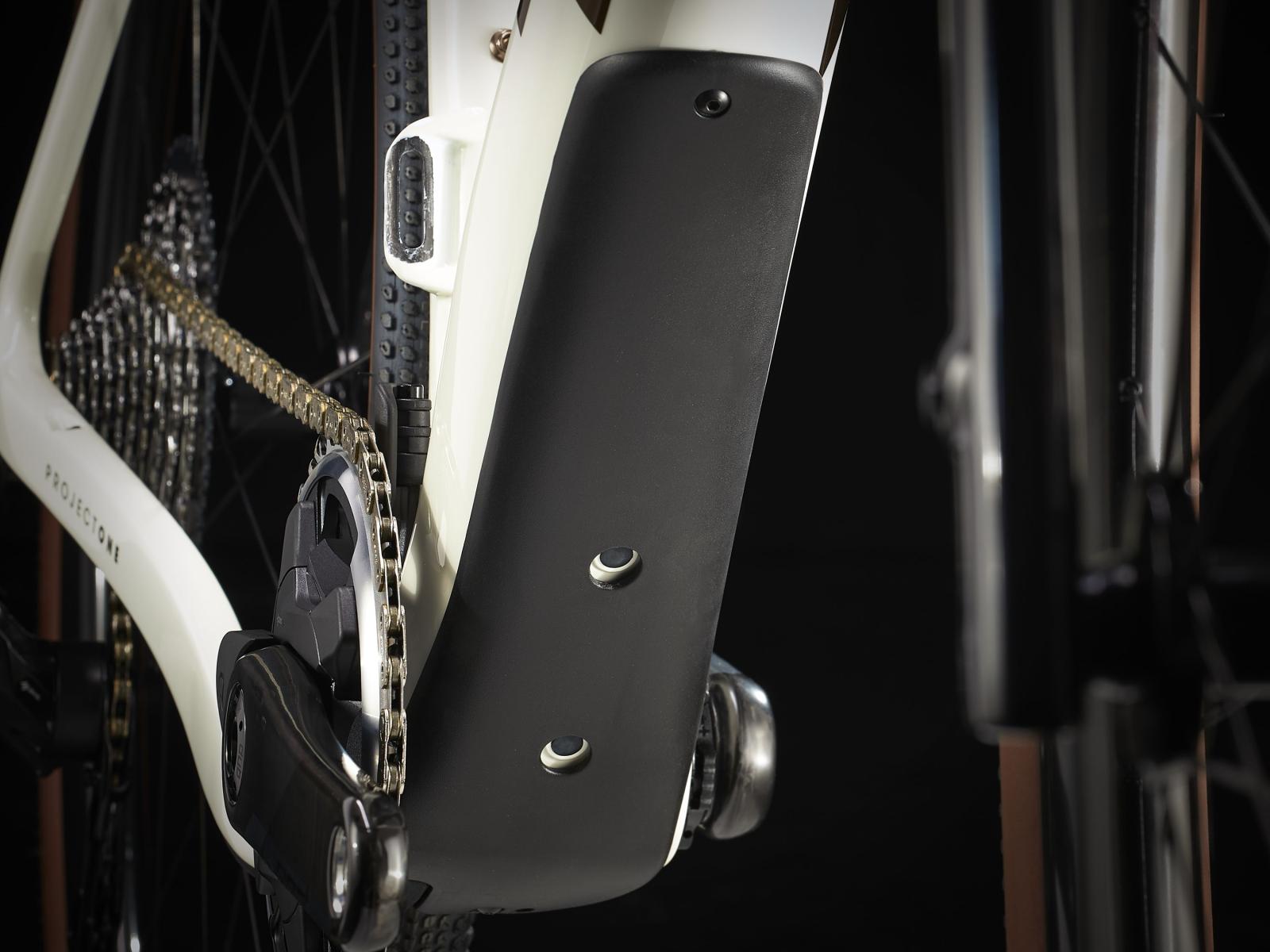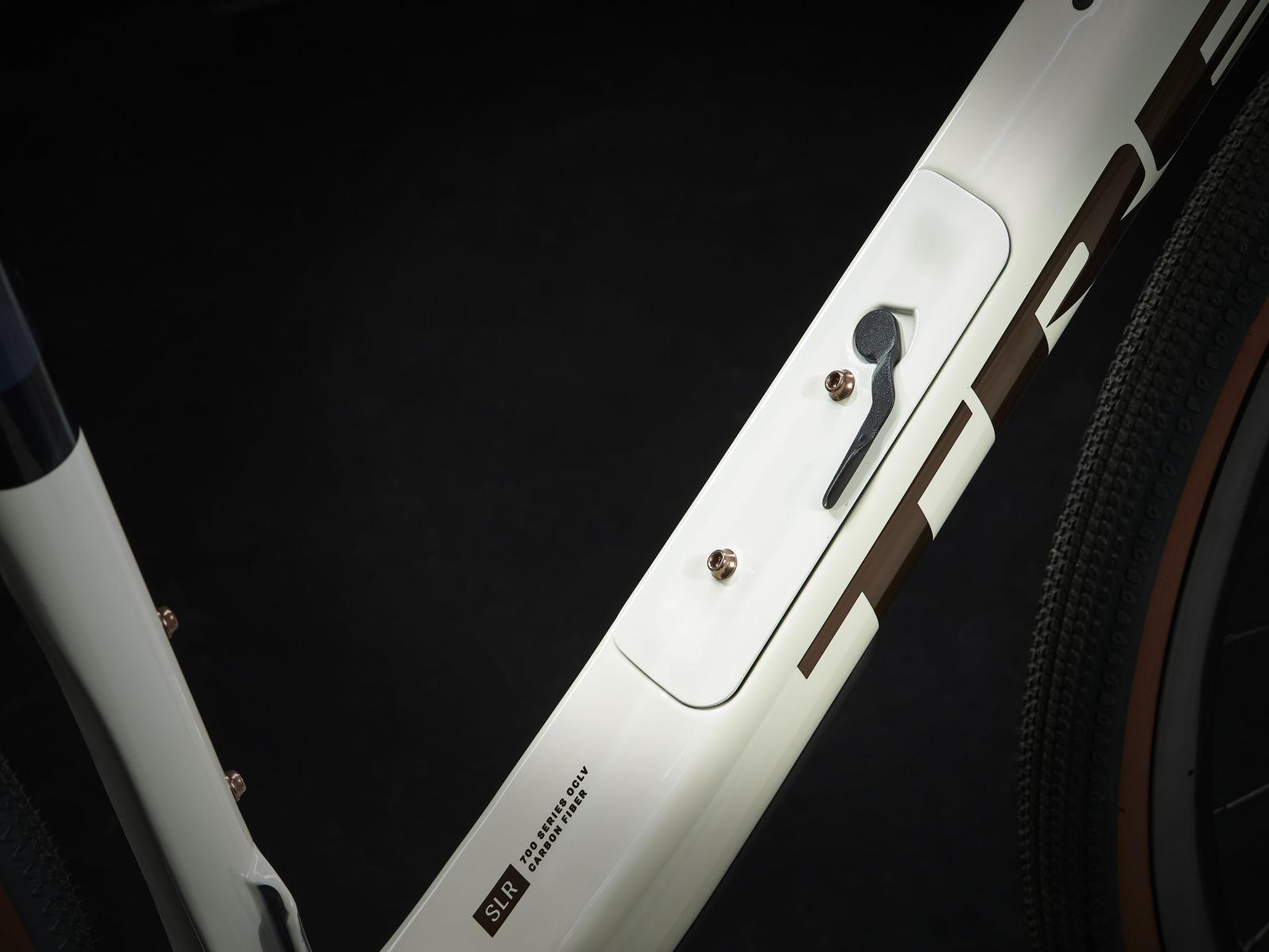 Ein ins Unterrohr integriertes Staufach nimmt Werkzeug und Ausrüstung sicher auf.