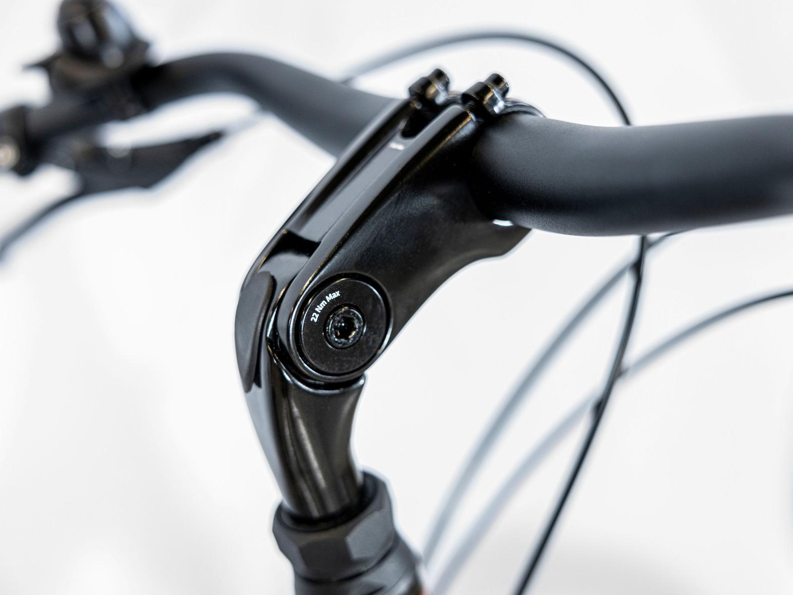 Lenkervorbau: Bontrager, Aluminiumschaftvorbau, 31,8 mm Klemmdurchmesser, verstellbarer Rise, Blendr-kompatibel, 105 mm Länge
