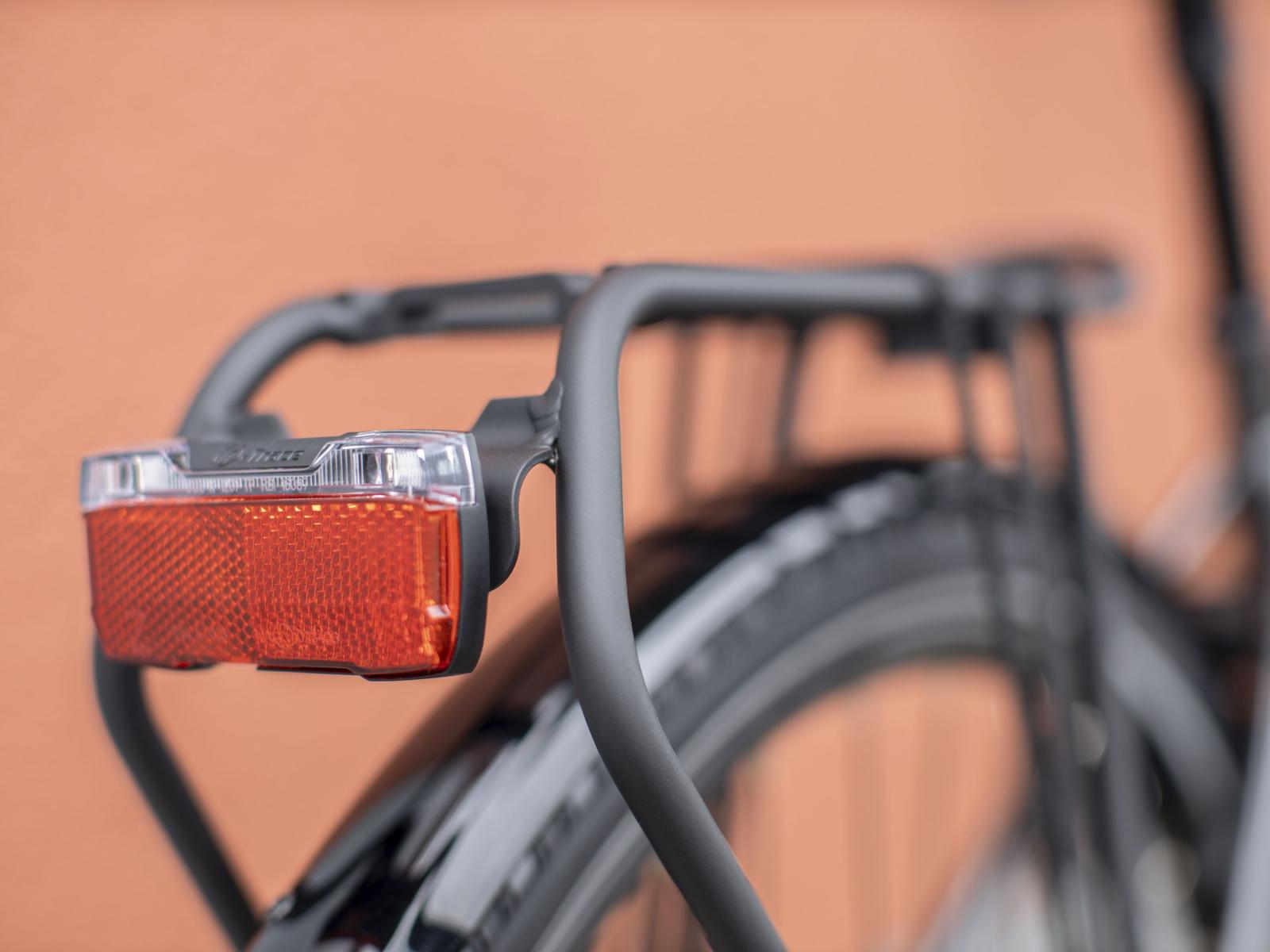 Einen leichten Rahmen aus Alpha Smooth Aluminium mit einer komfortablen, aufrechten Geometrie, eine Shimano Nexus-Nabenschaltung mit 7 Gängen, eine Forklight 3.0-Federgabel mit integriertem Scheinwerfer, einen Shimano Nexus-Nabendynamo am Vorderrad zur Speisung des Scheinwerfers und ein Rücklicht mit Standlichtfunktion. Außerdem bekommst du eine gefederte Sattelstütze, Rollenbremsen von Shimano, Schutzbleche, komfortable, ergonomische Griffe, einen verstellbaren Vorbau, einen MIK-kompatiblen Heckgepäckträger und breite, stabile 40C-Reifen mit reflektierenden Seitenwänden.