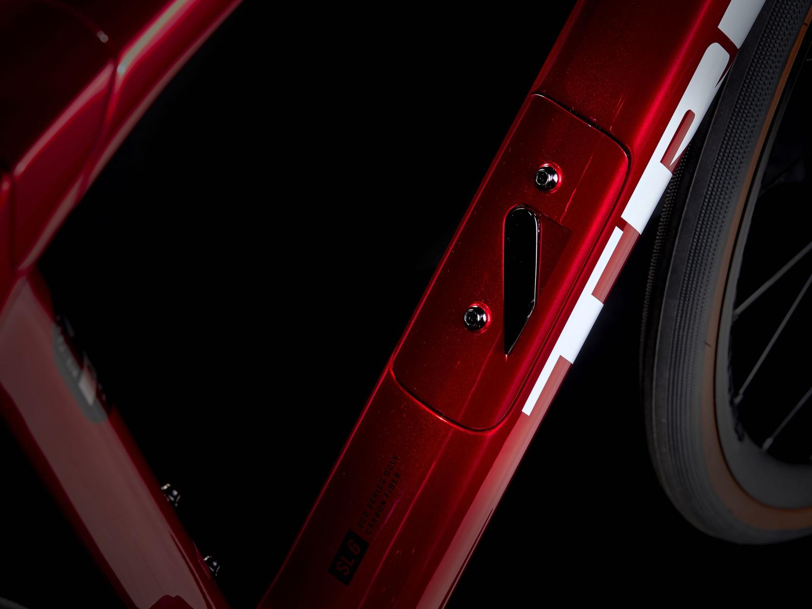 Einen leichten, optimierten Rahmen aus 500 Series OCLV Carbon mit vibrationsdämpfendem hinterem IsoSpeed, SRAMs drahtlosen, elektronischen Rival AXS 2x12-Antrieb und kraftvoll zupackende Flat Mount-Scheibenbremsen. Dazu gibts breite Bontrager Paradigm Comp Tubeless Ready-Laufräder, ein integriertes Carboncockpit, ein internes Staufach und eine interne Zugführung, die allesamt zum enormen Potenzial und zum schlanken Look des Bikes beitragen. Dank Befestigungsmöglichkeiten am Oberrohr lässt sich für längere Ausfahrten eine Tasche ganz ohne Spanngurte oder Riemen sicher anbringen.