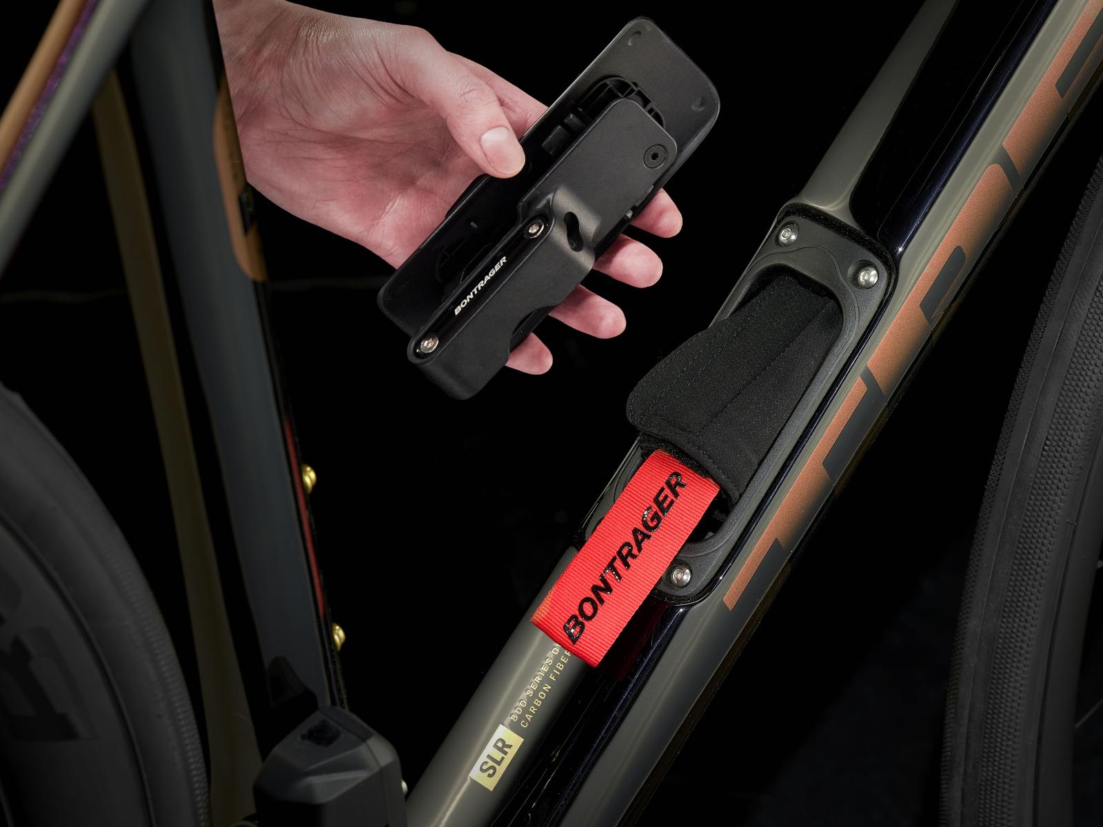 - Ein praktisches internes Staufach bietet vielseitigen Platz zur Unterbringung von Werkzeug und Ausrüstung, während sich am Oberrohr eine Tasche sauber und sicher anschrauben lässt.
