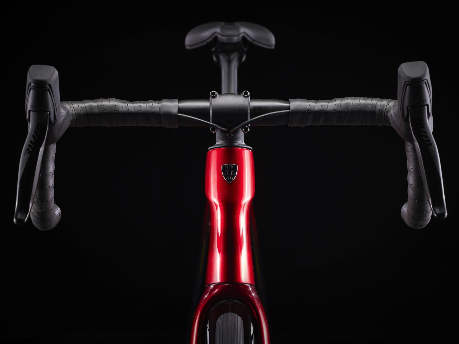Einen Rahmen samt Gabel aus 800 Series OCLV Carbon mit hinterem IsoSpeed, internem Staufach und Befestigungsmöglichkeiten am Oberrohr. Ausgestattet ist es mit einem drahtlosen, elektronischen SRAM Rival AXS 2x12-Antrieb, einem Kurbelsatz mit integriertem Powermeter zur Verfolgung deiner Performance, kraftvoll zupackenden Flat Mount-Scheibenbremsen, Aeolus Pro 37-Carbonlaufrädern und einem Bontrager Pro IsoCore-Lenker, der Straßenvibrationen im Vergleich zu herkömmlichen Carbonlenkern um 20 % verringert.