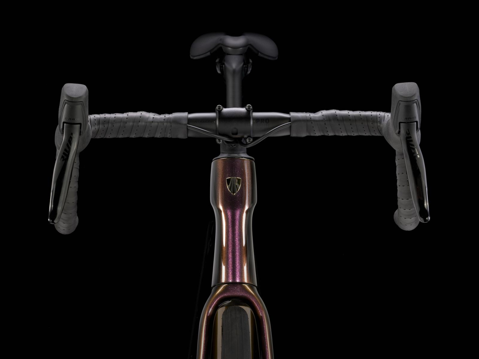 Einen Rahmen samt Gabel aus 800 Series OCLV Carbon mit hinterem IsoSpeed, internem Staufach und Befestigungsmöglichkeiten am Oberrohr. Ausgestattet ist es mit einem drahtlosen, elektronischen SRAM Rival AXS 2x12-Antrieb, einem Kurbelsatz mit integriertem Powermeter zur Verfolgung deiner Performance, kraftvoll zupackenden Flat Mount-Scheibenbremsen, Aeolus Pro 37-Carbonlaufrädern und einem Bontrager Pro IsoCore-Lenker, der Straßenvibrationen im Vergleich zu herkömmlichen Carbonlenkern um 20 % verringert.