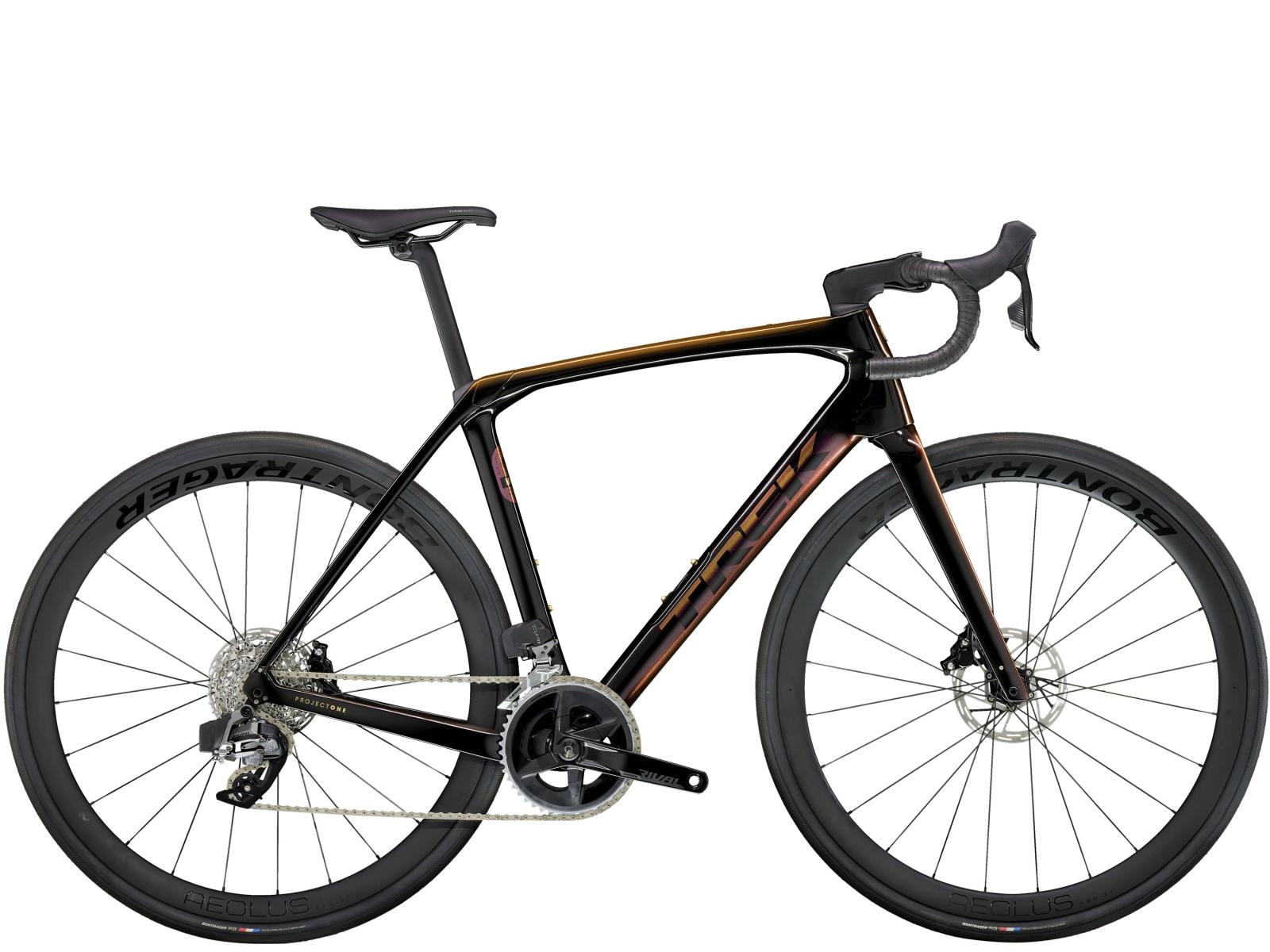 Einen Rahmen samt Gabel aus 800 Series OCLV Carbon mit hinterem IsoSpeed, internem Staufach und Befestigungsmöglichkeiten am Oberrohr. Ausgestattet ist es mit einem drahtlosen, elektronischen SRAM Rival AXS 2x12-Antrieb, einem Kurbelsatz mit integriertem Powermeter zur Verfolgung deiner Performance, kraftvoll zupackenden Flat Mount-Scheibenbremsen, Aeolus Pro 37-Carbonlaufrädern und einem Bontrager Pro IsoCore-Lenker, der Straßenvibrationen im Vergleich zu herkömmlichen Carbonlenkern um 20 % verringert.