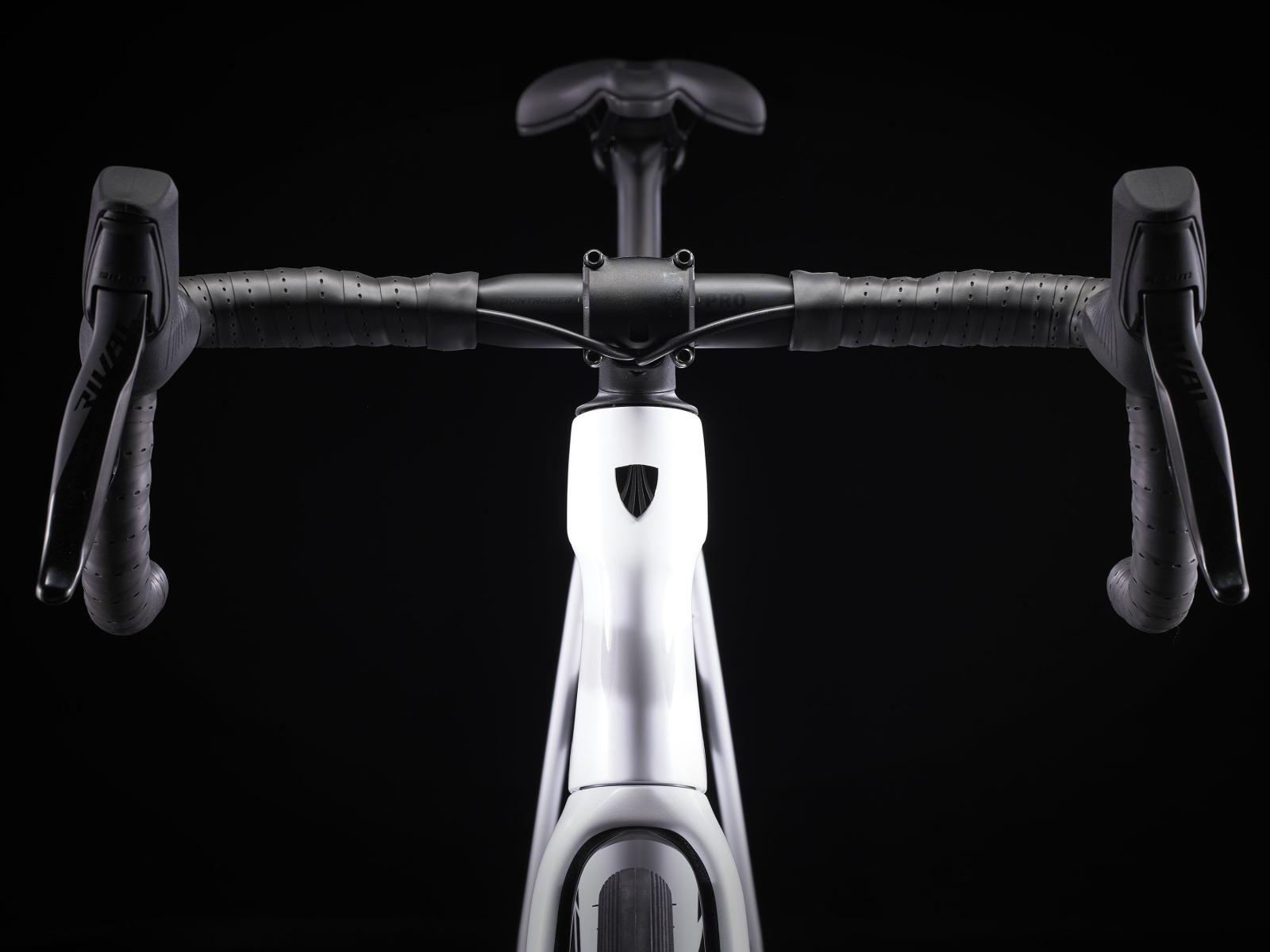 Einen Rahmen samt Gabel aus 800 Series OCLV Carbon mit hinterem IsoSpeed, internem Staufach und Befestigungsmöglichkeiten am Oberrohr. Ausgestattet ist es mit einem drahtlosen, elektronischen SRAM Rival AXS 2x12-Antrieb, einem Kurbelsatz mit integriertem Powermeter zur Verfolgung deiner Performance, kraftvoll zupackenden Flat Mount-Scheibenbremsen, Aeolus Pro 37-Carbonlaufrädern und einem Bontrager Pro IsoCore-Lenker, der Straßenvibrationen im Vergleich zu herkömmlichen Carbonlenkern um 20 % verringert.