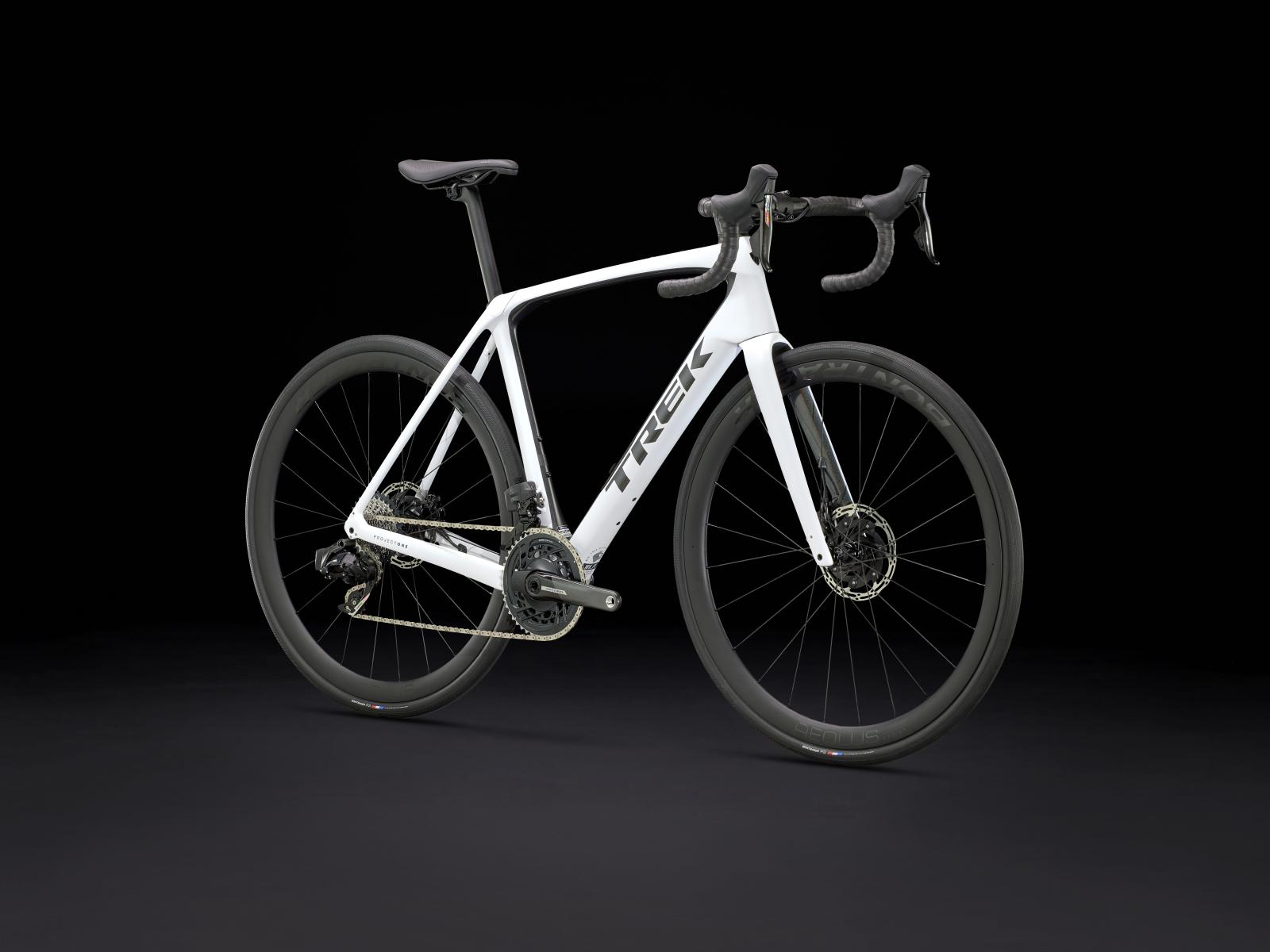 Einen Rahmen samt Gabel aus 800 Series OCLV Carbon mit hinterem IsoSpeed, internem Staufach und Befestigungsmöglichkeiten am Oberrohr. Ausgestattet ist es mit einem drahtlosen, elektronischen SRAM Force AXS D2 2x12-Antrieb, einem Kurbelsatz mit integriertem Powermeter zur Verfolgung deiner Performance, kraftvoll zupackenden Flat Mount-Scheibenbremsen, Aeolus Pro 37-Carbonlaufrädern und einem Bontrager Pro IsoCore-Lenker, der Straßenvibrationen im Vergleich zu herkömmlichen Carbonlenkern um 20 % verringert.