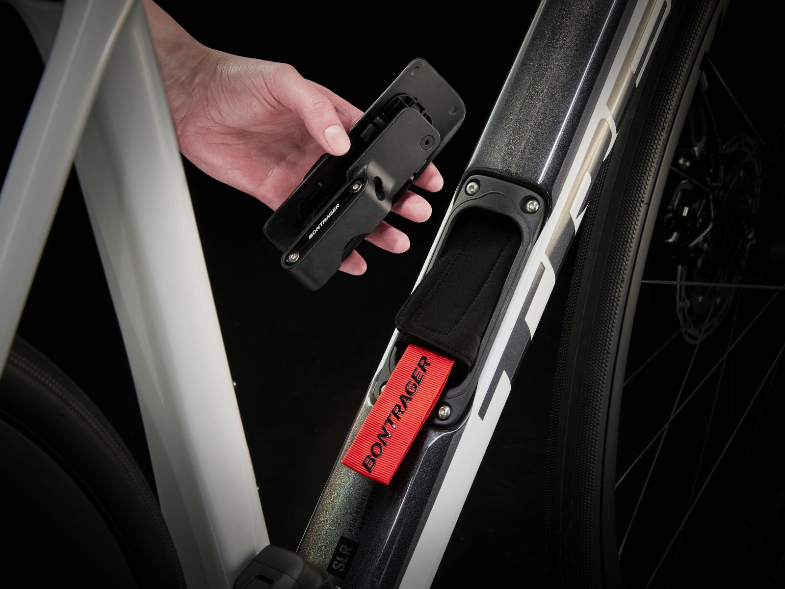 - Ein praktisches internes Staufach bietet vielseitigen Platz zur Unterbringung von Werkzeug und Ausrüstung, während sich am Oberrohr eine Tasche sauber und sicher anschrauben lässt.