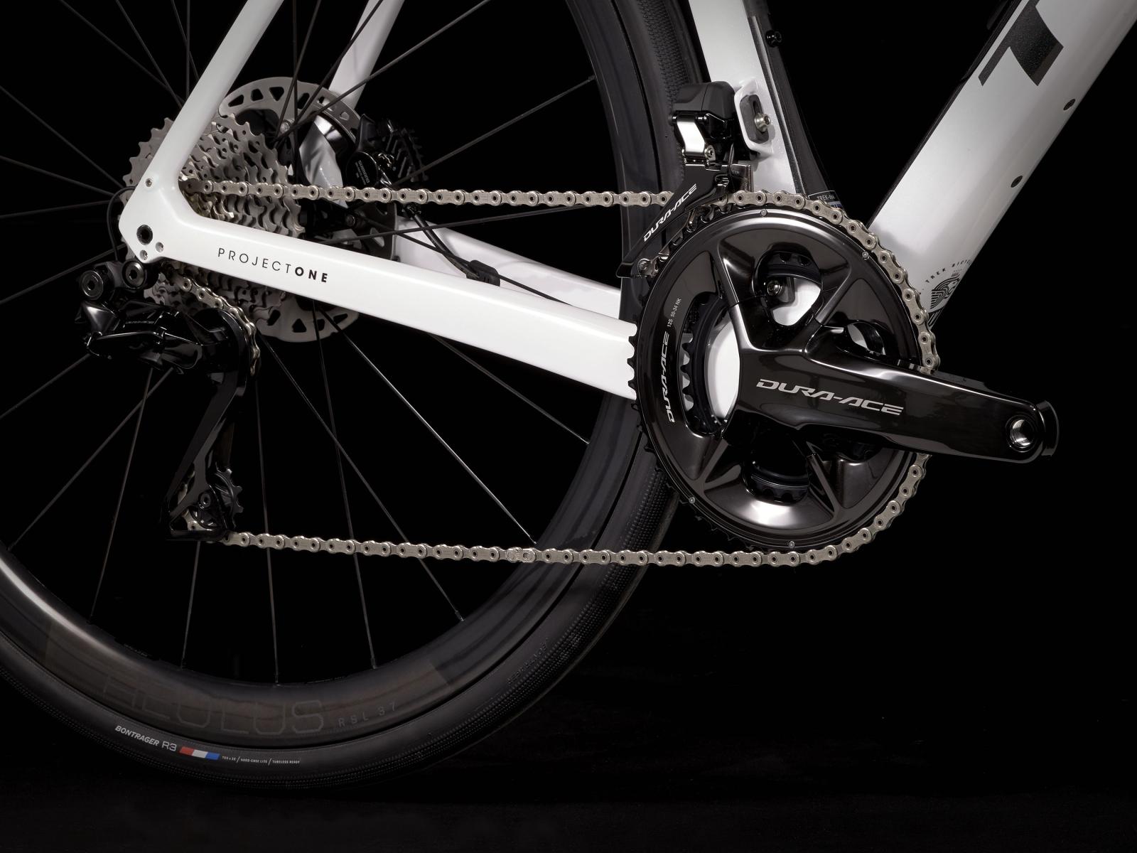 Einen Rahmen samt Gabel aus 800 Series OCLV Carbon mit hinterem IsoSpeed, internem Staufach und Befestigungsmöglichkeiten am Oberrohr. Ausgestattet ist es mit Shimanos drahtlosem, elektronischem Dura-Ace Di2 2x12-Antrieb, kraftvoll zupackenden Flat Mount Scheibenbremsen und Aeolus Pro 37 Carbonlaufrädern sowie mit einem Bontrager Pro IsoCore Lenker, der Straßenvibrationen im Vergleich zu herkömmlichen Carbonlenkern um 20 % verringert.