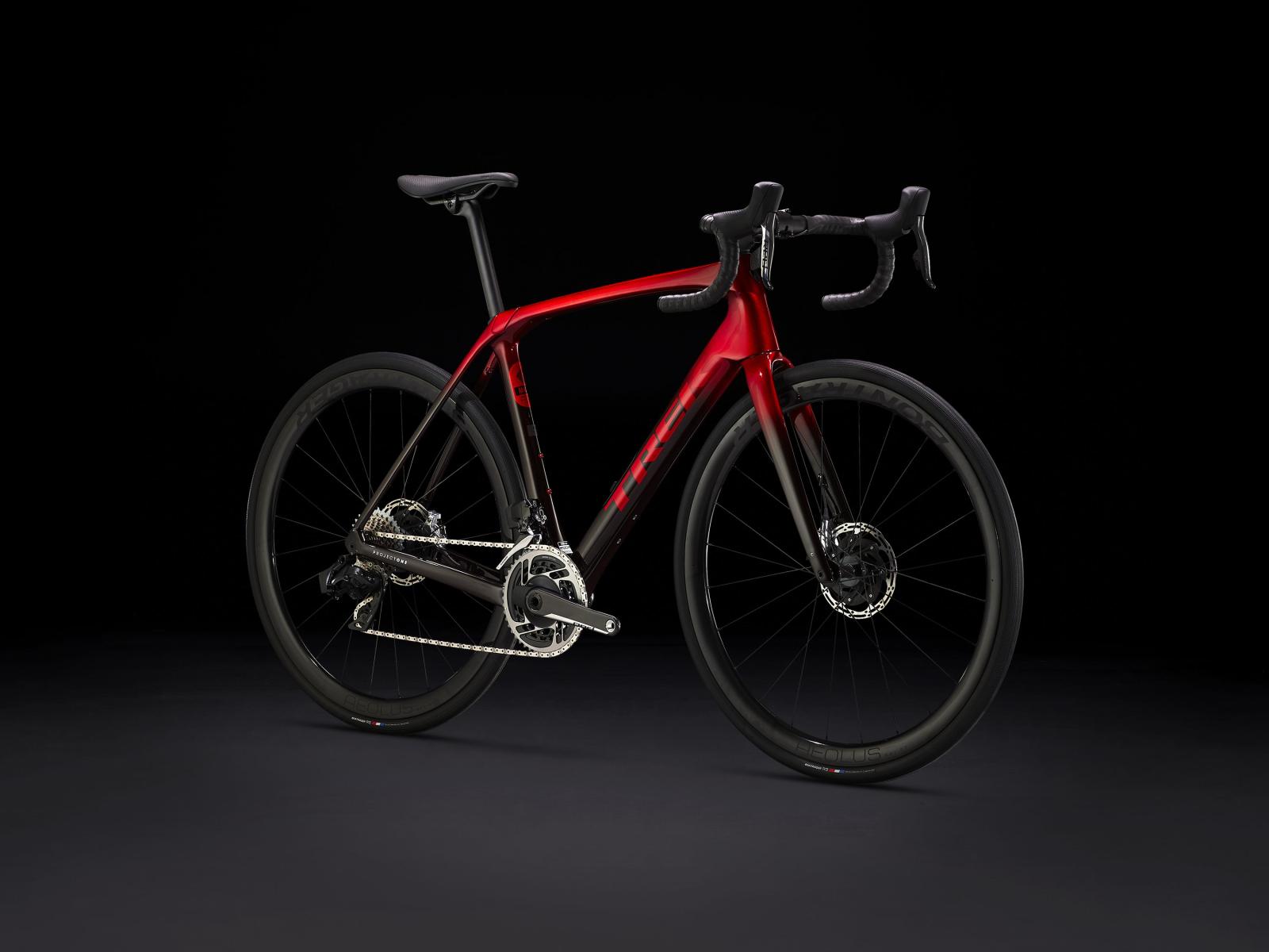 Einen Rahmen samt Gabel aus 800 Series OCLV Carbon mit hinterem IsoSpeed, internem Staufach und Befestigungsmöglichkeiten am Oberrohr. Ausgestattet ist es mit einem drahtlosen, elektronischen SRAM RED AXS-Antrieb, einem Kurbelsatz mit integriertem Powermeter zur Überwachung deiner Performance, kraftvoll zupackenden Flat Mount-Scheibenbremsen, Aeolus Pro 37-Carbonlaufrädern und einem Bontrager Pro IsoCore-Lenker, der Straßenvibrationen im Vergleich zu herkömmlichen Carbonlenkern um 20 % verringert.