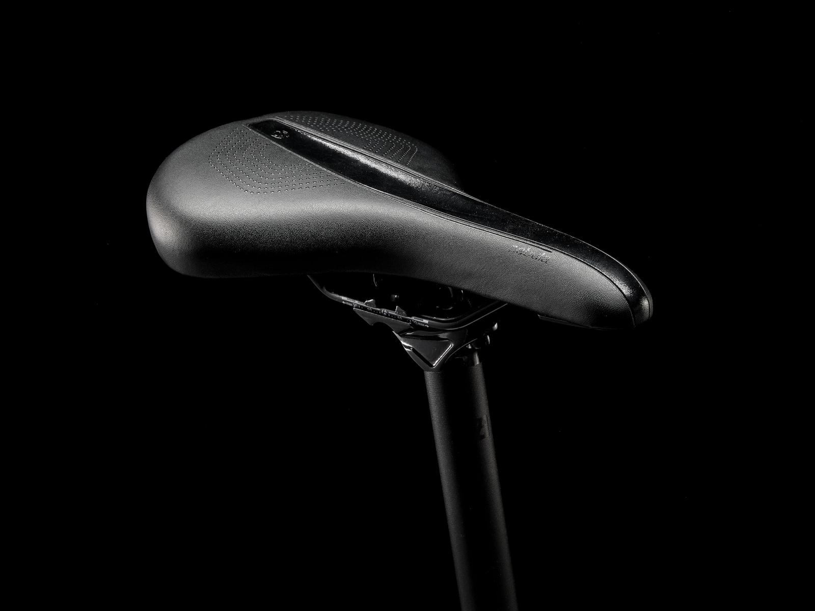 Einen leichten Aluminiumrahmen mit interner Zugführung für einen sauberen Look, eine leichte Carbongabel, Bontrager Kovee Tubeless Ready 650B-Laufräder mit breiten 50C-Reifen zur Verbesserung der Geländegängigkeit und des Komforts in abwechslungsreichem Terrain und eine einfach zu bedienende, umwerferlose Shimano Deore 1x10-Schaltung. Aber keine Sorge: Mit der breiten Übersetzungsspanne der 11-46-Kassette stehen dir mehr als genug Gänge für deftige Anstiege und rasante Abfahrten zur Verfügung. Dazu kommen kraftvoll zupackende Scheibenbremsen und Aufnahmen für einen Gepäckträger und Schutzbleche.