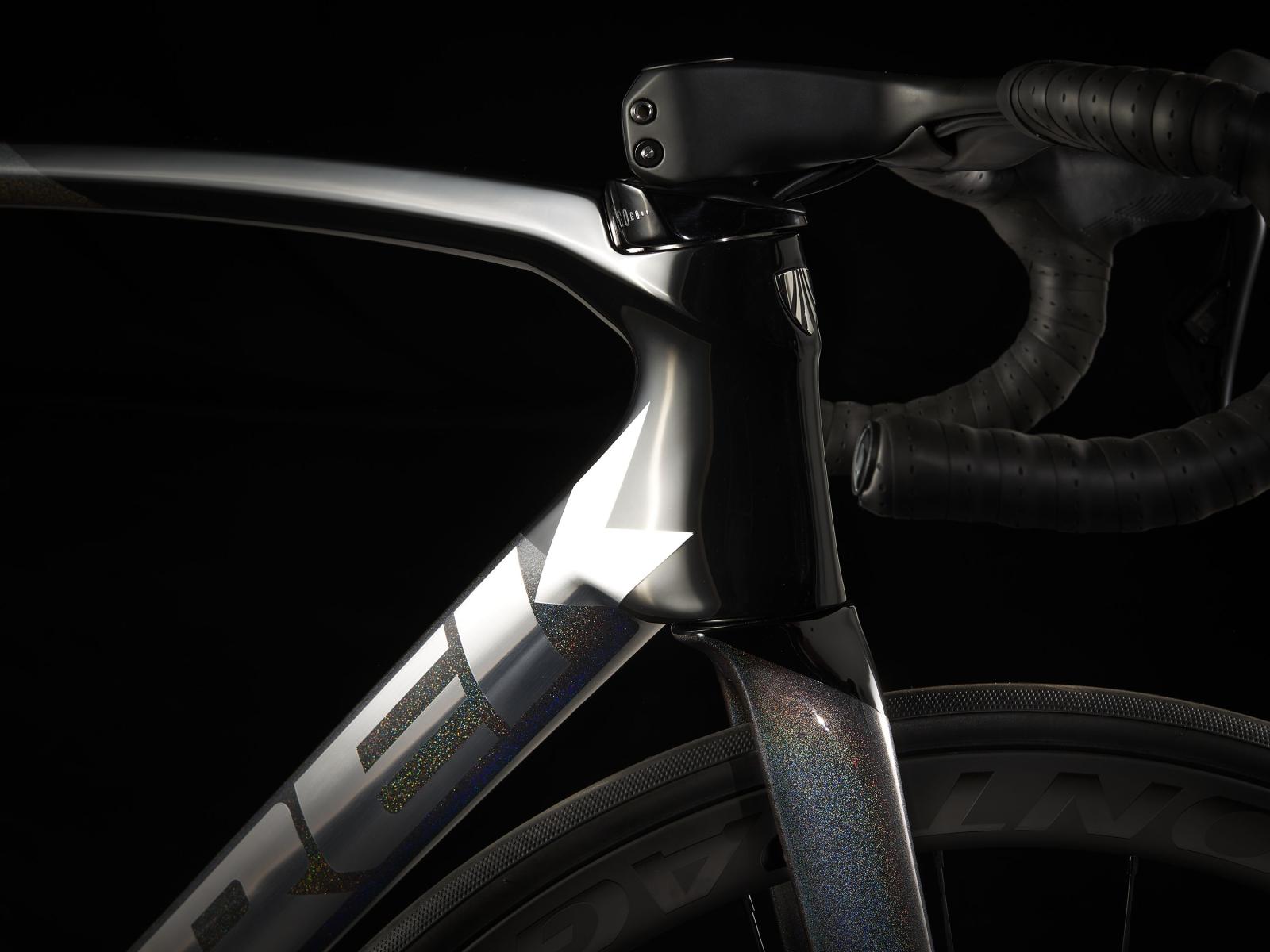 Einen ultraleichten und aerodynamischen Rahmen aus 800 Series OCLV Carbon mit weniger als 700 Gramm Gewicht, eine Vollcarbongabel, einen drahtlosen, elektronischen Shimano 105 Di2 2x12-Antrieb, leichte Bontrager Aeolus Pro 37 Tubeless Ready-Laufräder aus OCLV Carbon, eine integrierte Aeolus RSL Lenker/Vorbau-Einheit aus OCLV Carbon und kraftvoll zupackende hydraulische Scheibenbremsen.