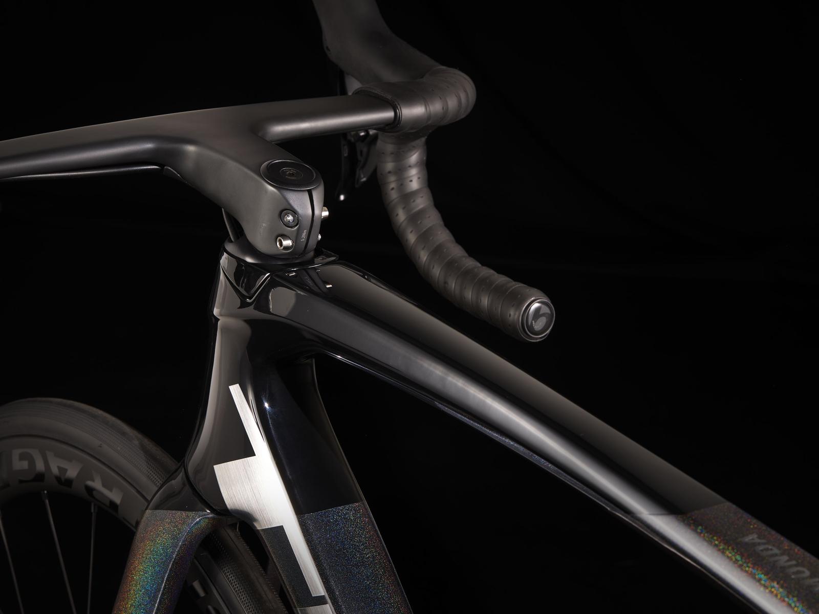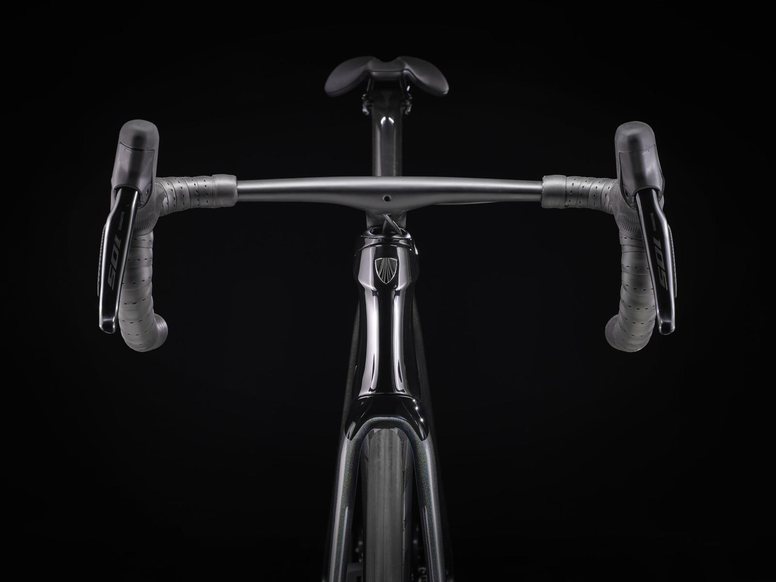 Einen ultraleichten und aerodynamischen Rahmen aus 800 Series OCLV Carbon mit weniger als 700 Gramm Gewicht, eine Vollcarbongabel, einen drahtlosen, elektronischen Shimano 105 Di2 2x12-Antrieb, leichte Bontrager Aeolus Pro 37 Tubeless Ready-Laufräder aus OCLV Carbon, eine integrierte Aeolus RSL Lenker/Vorbau-Einheit aus OCLV Carbon und kraftvoll zupackende hydraulische Scheibenbremsen.