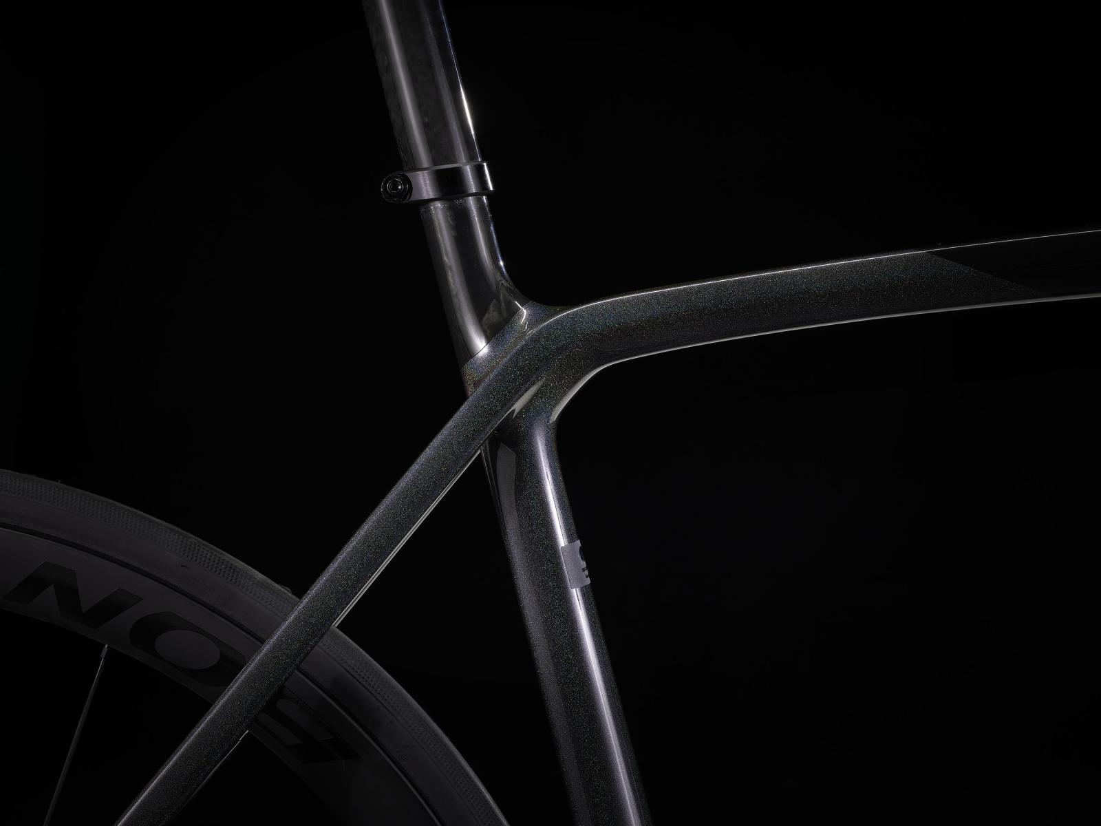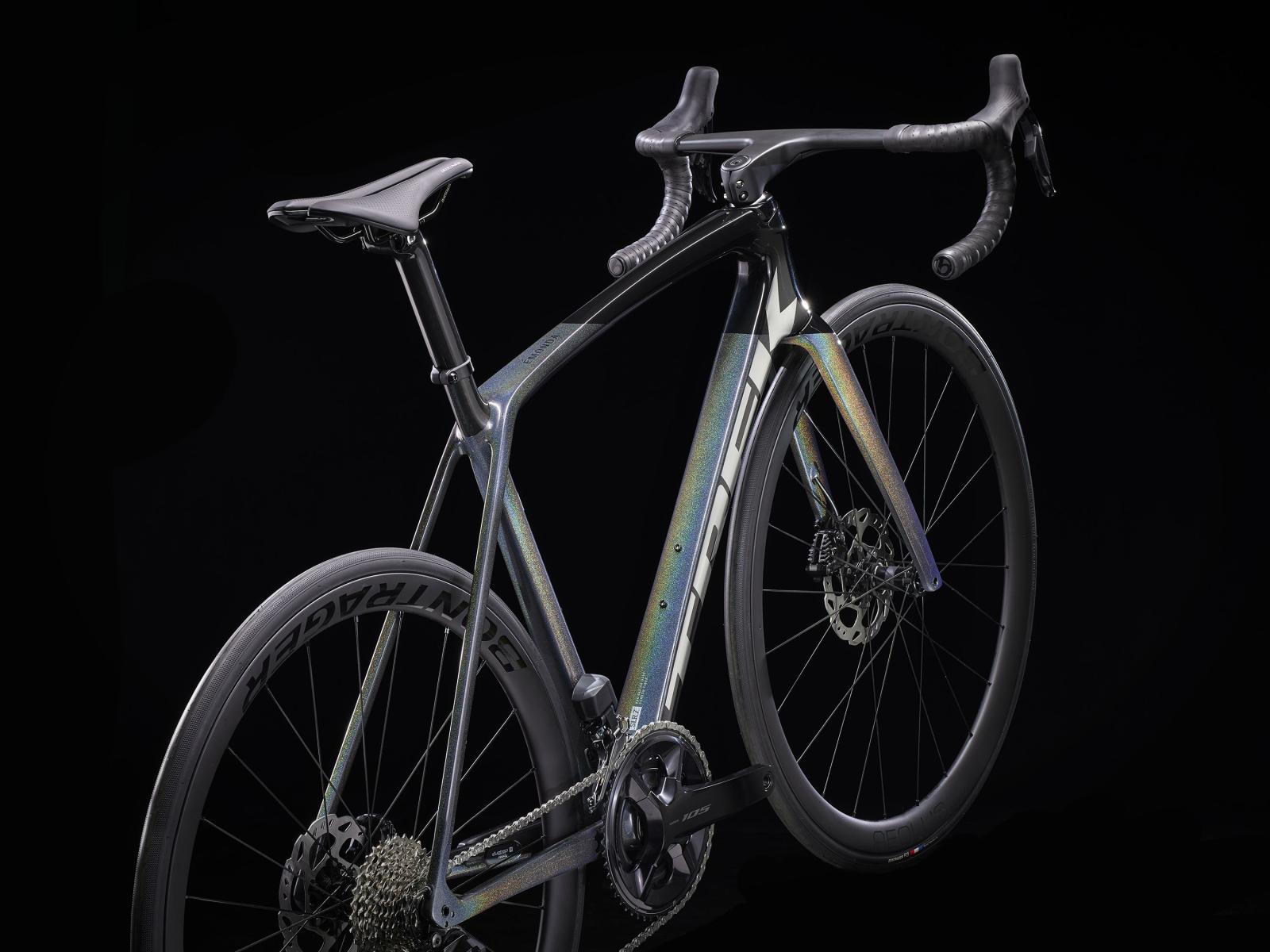 Einen ultraleichten und aerodynamischen Rahmen aus 800 Series OCLV Carbon mit weniger als 700 Gramm Gewicht, eine Vollcarbongabel, einen drahtlosen, elektronischen Shimano 105 Di2 2x12-Antrieb, leichte Bontrager Aeolus Pro 37 Tubeless Ready-Laufräder aus OCLV Carbon, eine integrierte Aeolus RSL Lenker/Vorbau-Einheit aus OCLV Carbon und kraftvoll zupackende hydraulische Scheibenbremsen.