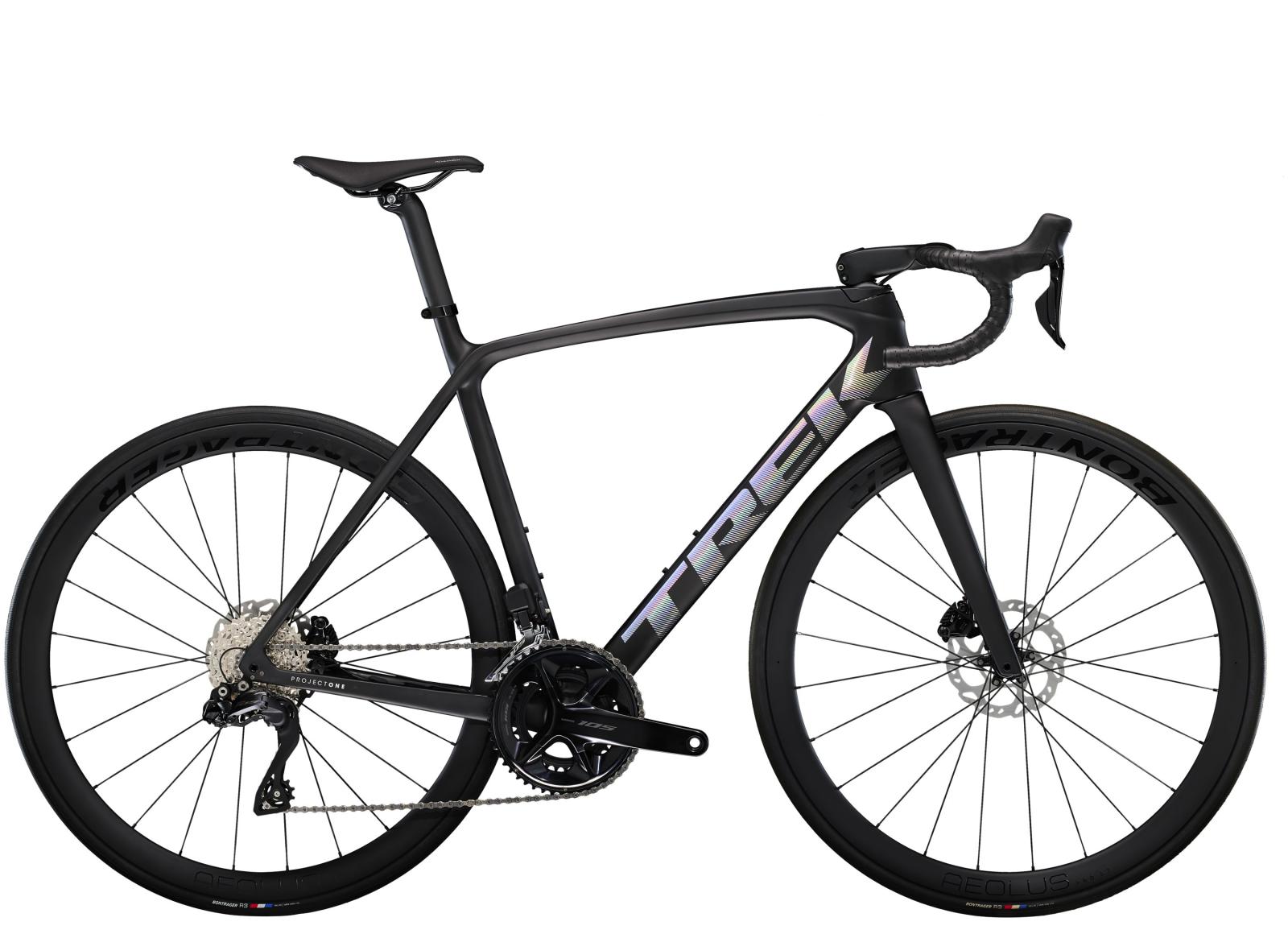 Einen ultraleichten und aerodynamischen Rahmen aus 800 Series OCLV Carbon mit weniger als 700 Gramm Gewicht, eine Vollcarbongabel, einen drahtlosen, elektronischen Shimano 105 Di2 2x12-Antrieb, leichte Bontrager Aeolus Pro 37 Tubeless Ready-Laufräder aus OCLV Carbon, eine integrierte Aeolus RSL Lenker/Vorbau-Einheit aus OCLV Carbon und kraftvoll zupackende hydraulische Scheibenbremsen.