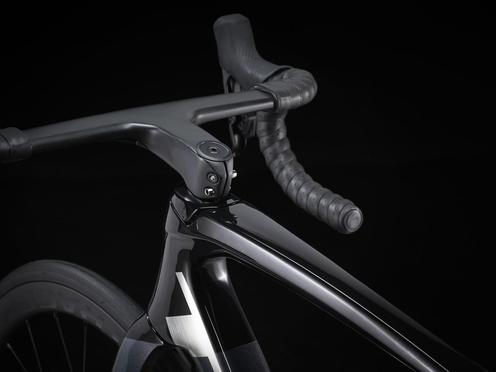 Einen ultraleichten und aerodynamischen Rahmen aus 800 Series OCLV Carbon, der weniger als 700 Gramm auf die Waage bringt, einen drahtlosen, elektronischen SRAM Rival AXS-Antrieb samt Rival AXS-Powermeter, leichte Bontrager Aeolus Pro 37 Tubeless Ready-Laufräder aus OCLV Carbon, eine integrierte Aeolus RSL Lenker/Vorbau-Einheit aus OCLV Carbon und kraftvoll zupackende hydraulische Scheibenbremsen.