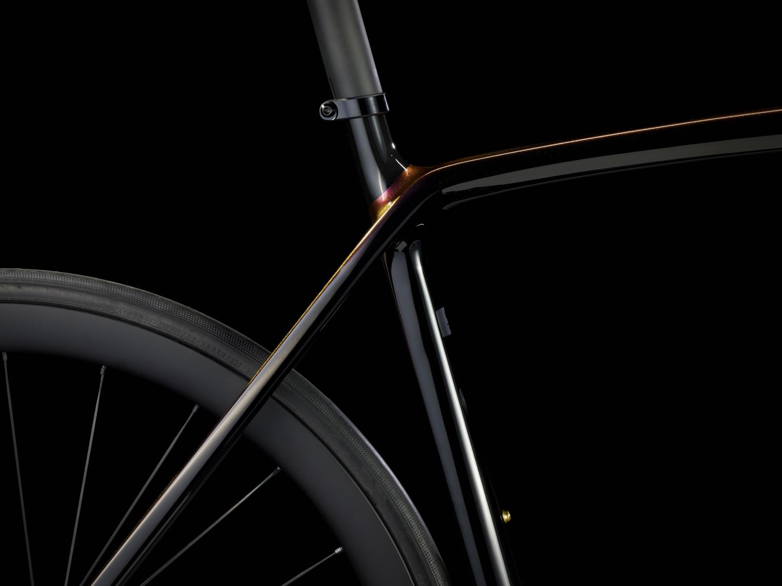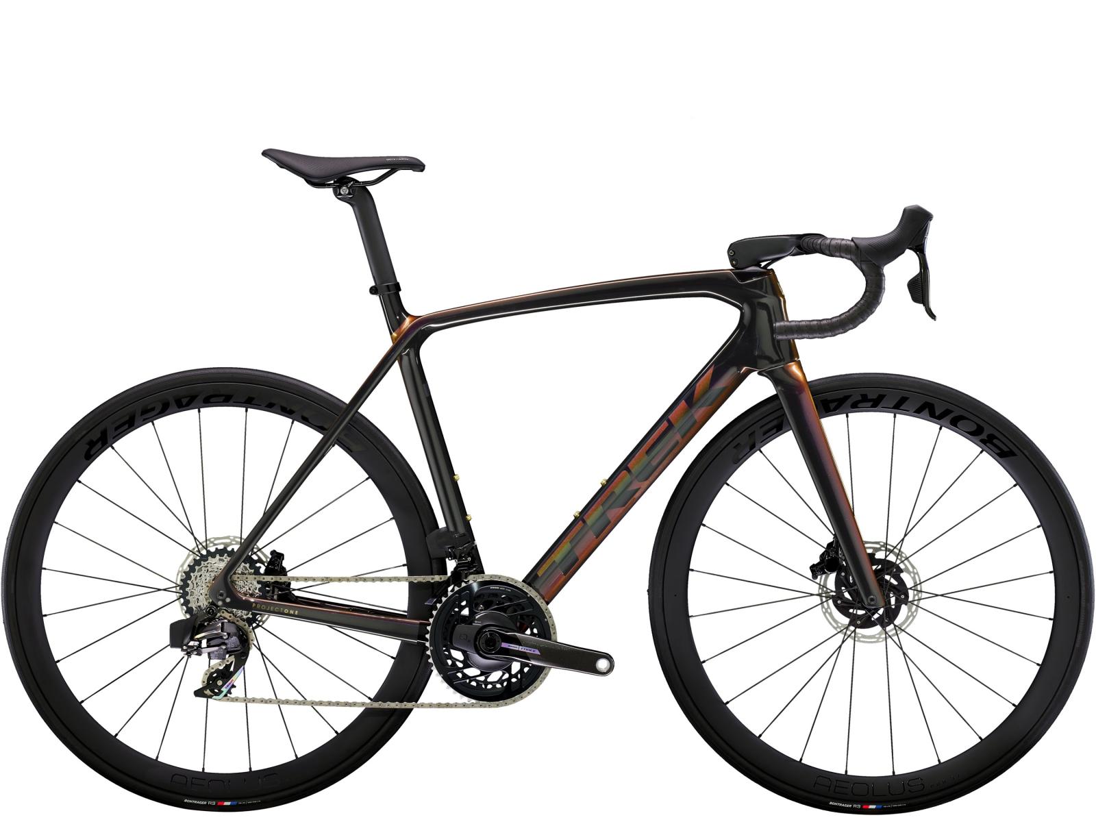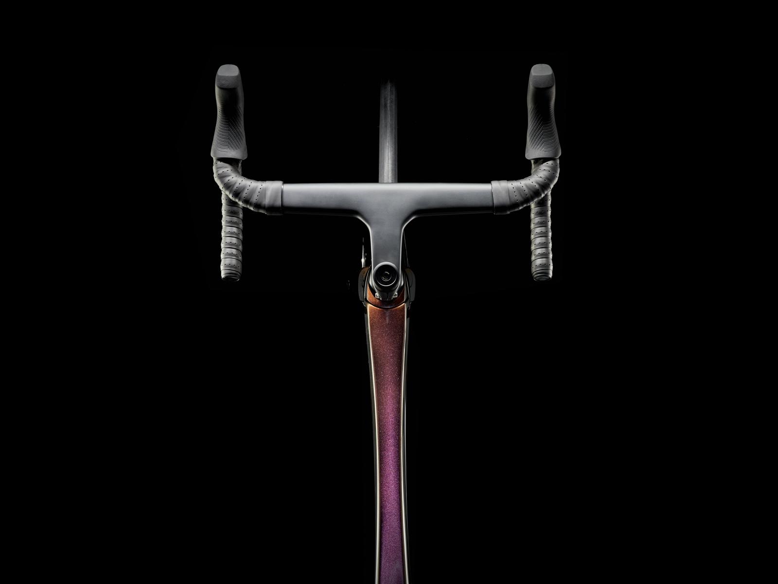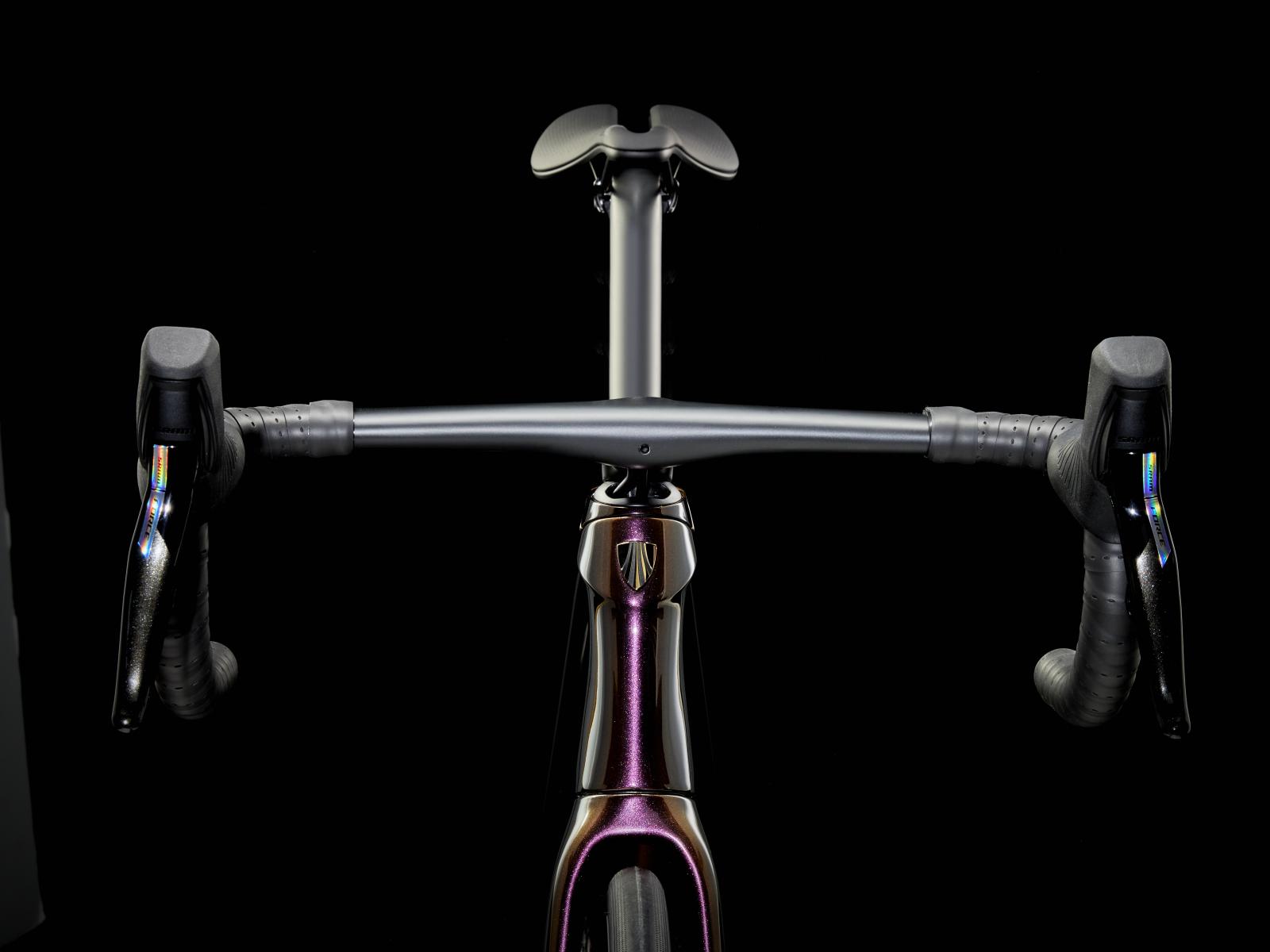 Einen ultraleichten, aerodynamischen Rahmen aus 800 Series OCLV Carbon, der weniger als 700 Gramm auf die Waage bringt, einen drahtlosen, elektronischen SRAM Force AXS D2 2x12-Antrieb, leichte Bontrager Aeolus Pro 37 Tubeless Ready-Laufräder aus OCLV Carbon, eine integrierte Aeolus RSL Lenker/Vorbau-Einheit aus OCLV Carbon, einen SRAM Force AXS-Powermeter und kraftvoll zupackende hydraulische Scheibenbremsen.