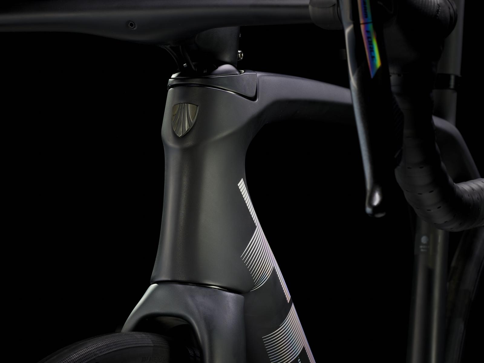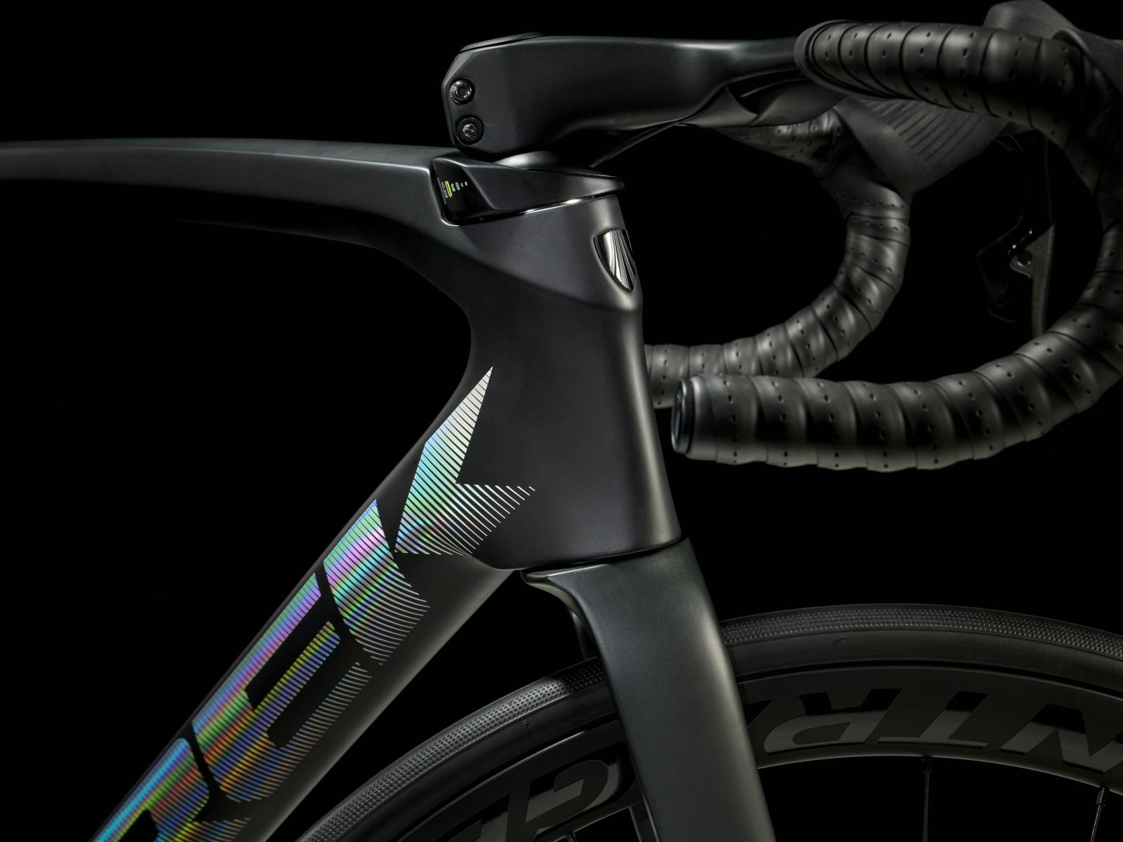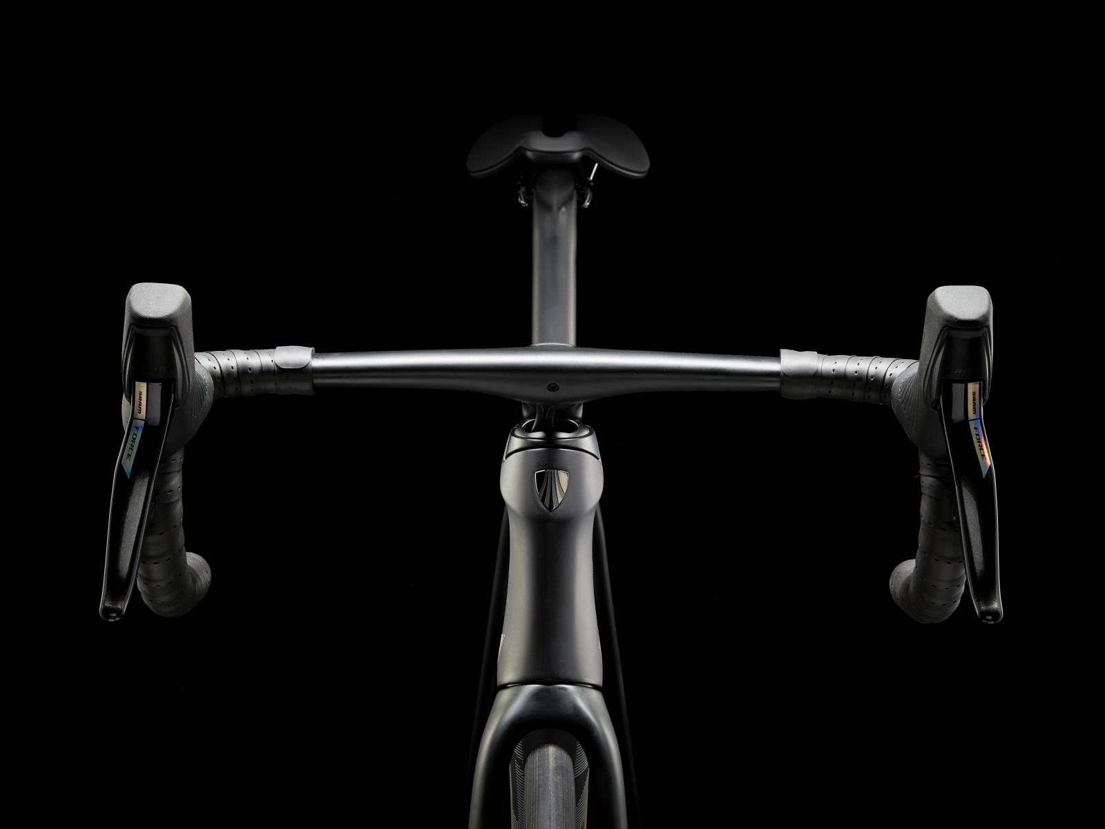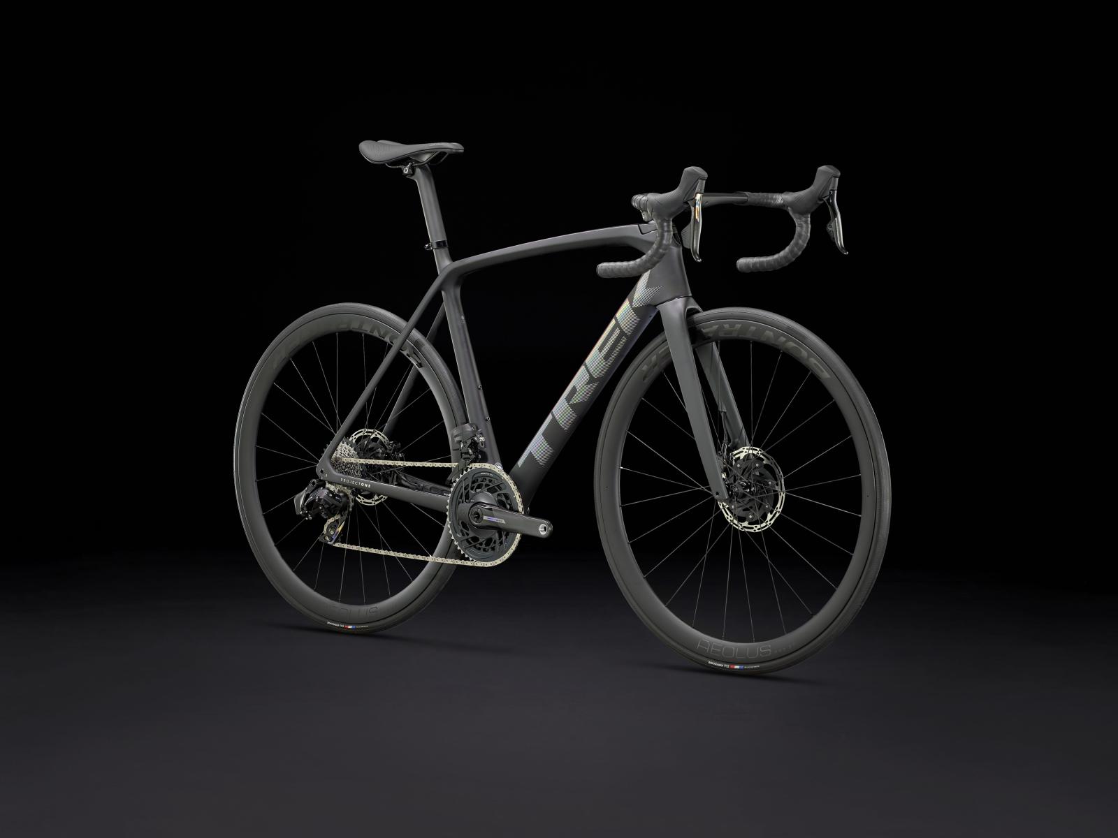 Einen ultraleichten, aerodynamischen Rahmen aus 800 Series OCLV Carbon, der weniger als 700 Gramm auf die Waage bringt, einen drahtlosen, elektronischen SRAM Force AXS D2 2x12-Antrieb, leichte Bontrager Aeolus Pro 37 Tubeless Ready-Laufräder aus OCLV Carbon, eine integrierte Aeolus RSL Lenker/Vorbau-Einheit aus OCLV Carbon, einen SRAM Force AXS-Powermeter und kraftvoll zupackende hydraulische Scheibenbremsen.