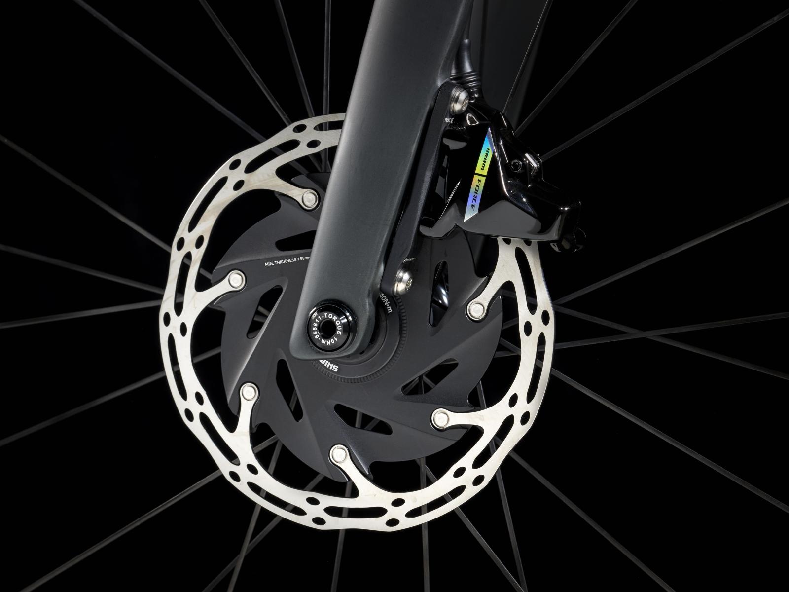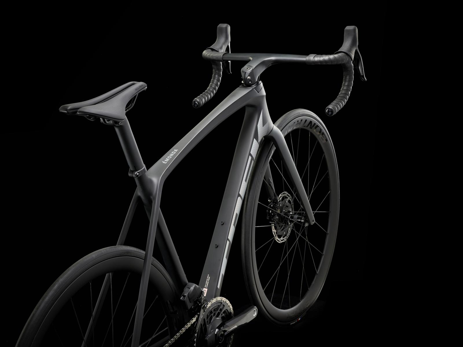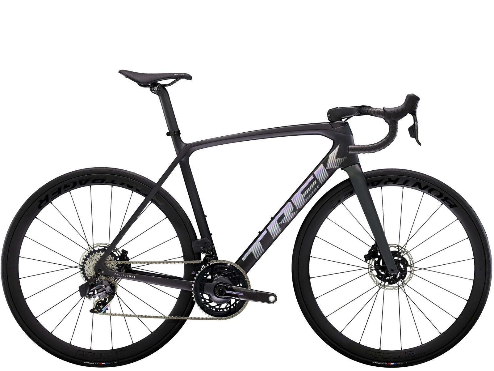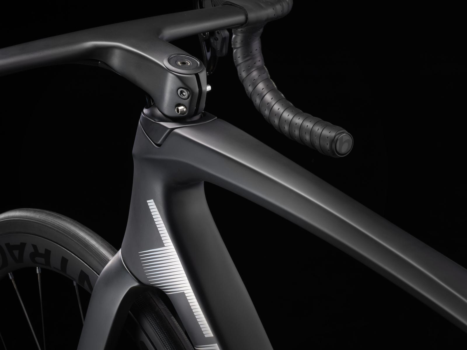 Einen ultraleichten, aerodynamischen Rahmen aus 800 Series OCLV Carbon, der weniger als 700 Gramm auf die Waage bringt, einen drahtlosen, elektronischen SRAM Force AXS D2 2x12-Antrieb, leichte Bontrager Aeolus Pro 37 Tubeless Ready-Laufräder aus OCLV Carbon, eine integrierte Aeolus RSL Lenker/Vorbau-Einheit aus OCLV Carbon, einen SRAM Force AXS-Powermeter und kraftvoll zupackende hydraulische Scheibenbremsen.