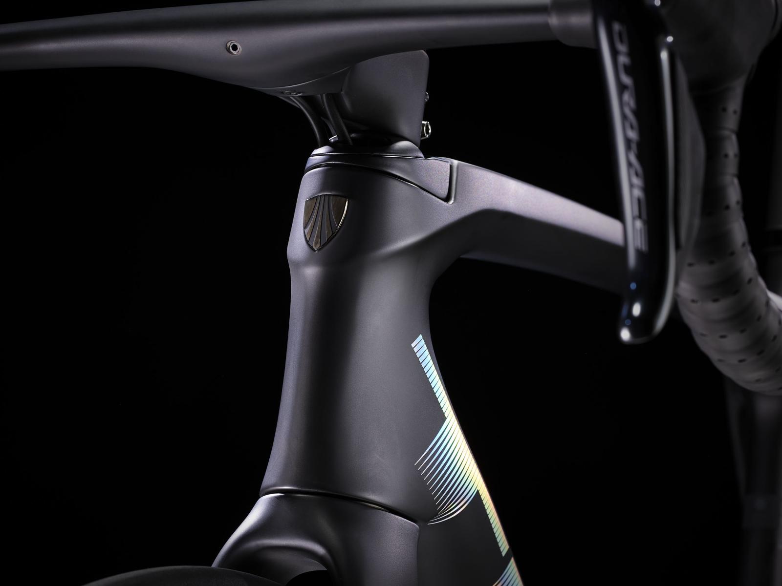 Einen ultraleichten und aerodynamischen Rahmen aus 800 Series OCLV Carbon, der weniger als 700 Gramm auf die Waage bringt, einen neuen drahtlosen elektronischen Shimano Dura-Ace Di2 2x12-Antrieb, ultraleichte, schnelle und stabile Bontrager Aeolus RSL 37 Tubeless Ready-Laufräder aus OCLV Carbon, eine integrierte Aeolus RSL Lenker/Vorbau-Einheit aus OCLV Carbon und kraftvoll zupackende hydraulische Scheibenbremsen.