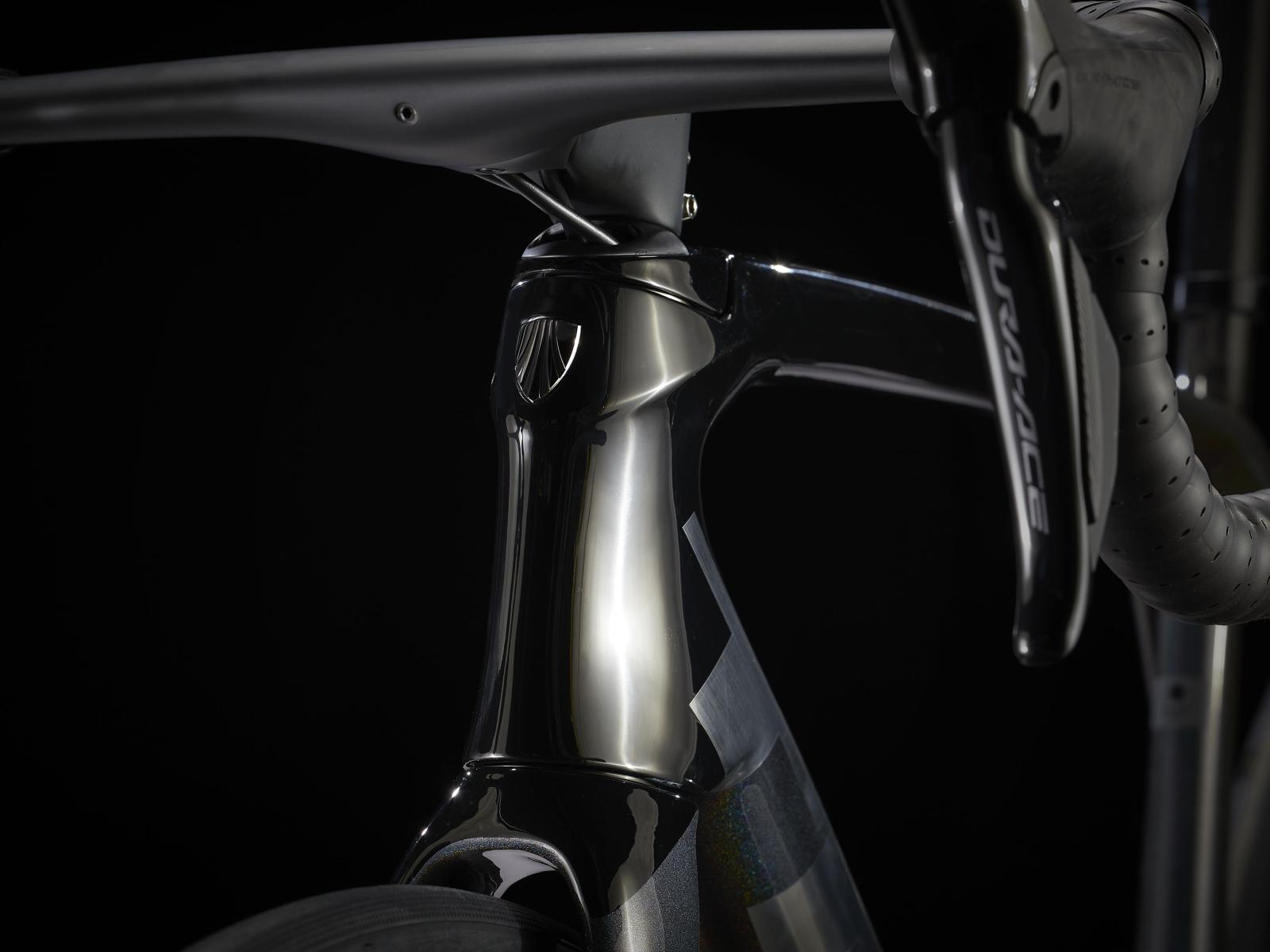 Einen ultraleichten und aerodynamischen Rahmen aus 800 Series OCLV Carbon, der weniger als 700 Gramm auf die Waage bringt, einen neuen drahtlosen elektronischen Shimano Dura-Ace Di2 2x12-Antrieb, ultraleichte, schnelle und stabile Bontrager Aeolus RSL 37 Tubeless Ready-Laufräder aus OCLV Carbon, eine integrierte Aeolus RSL Lenker/Vorbau-Einheit aus OCLV Carbon und kraftvoll zupackende hydraulische Scheibenbremsen.