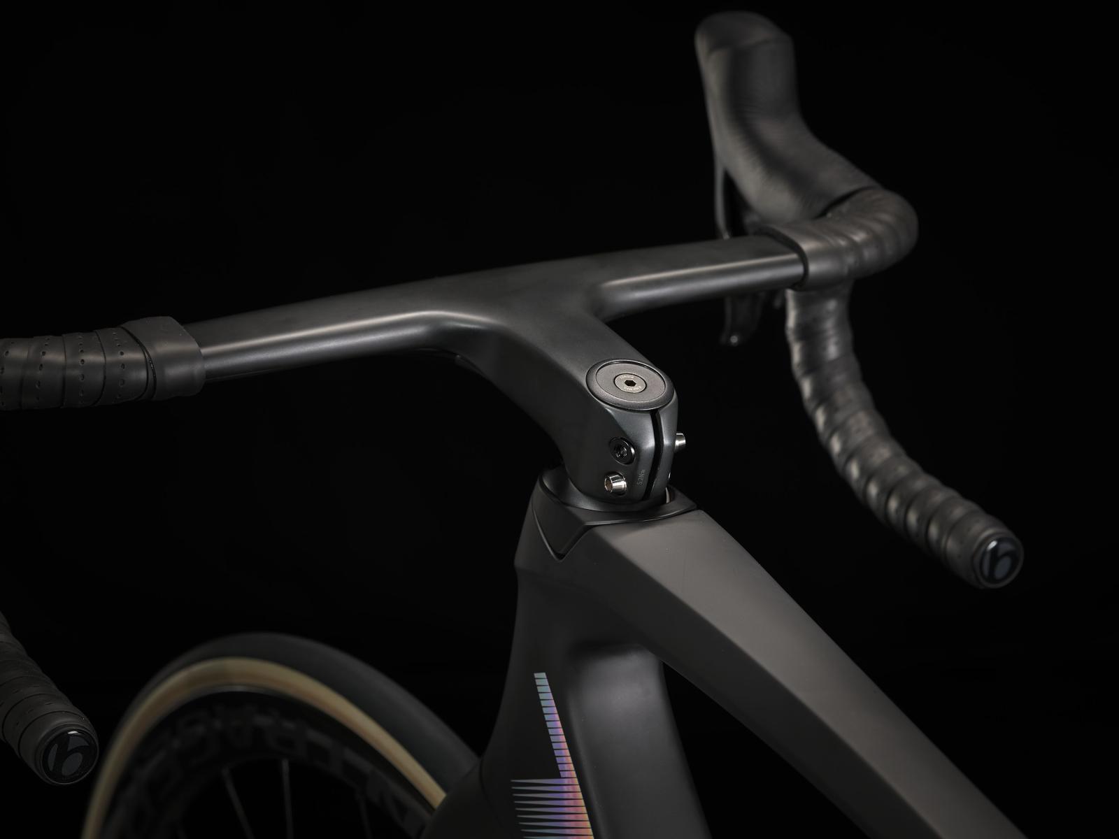 Lenker: Bontrager Aeolus RSL, integrierte Lenker/Vorbau-Kombination, OCLV Carbon, interne Di2-Kabelführung, 100 mm Reach, 124 mm Drop, 38 cm Breite, 80 mm Vorbaulänge