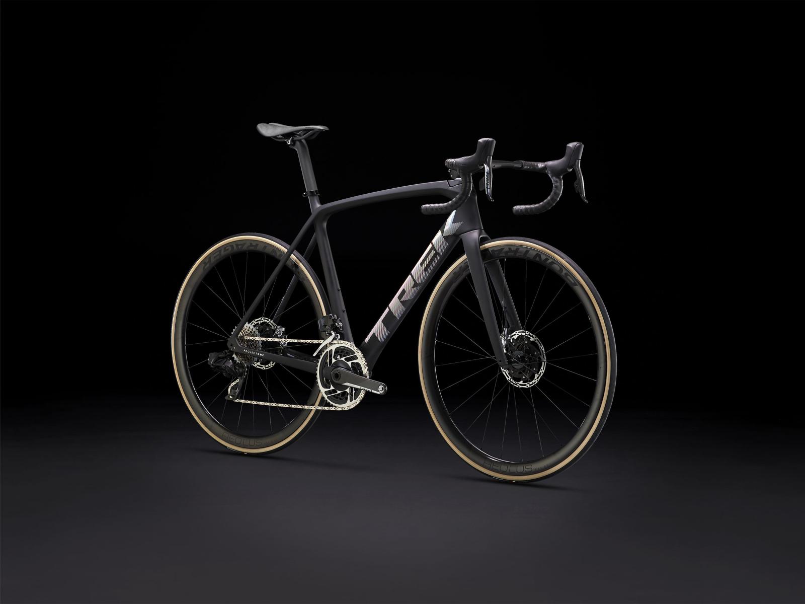 Einen ultraleichten und aerodynamischen Rahmen aus 800 Series OCLV Carbon, der weniger als 700 Gramm auf die Waage bringt, einen SRAM RED AXS 2x12-Antrieb mit drahtloser, elektronischer Schaltung, ultraleichte, schnelle und stabile Bontrager Aeolus RSL 37 Tubeless Ready-Laufräder aus OCLV Carbon, eine integrierte Aeolus RSL Lenker/Vorbau-Einheit aus OCLV Carbon, einen SRAM RED AXS-Powermeter und kraftvoll zupackende hydraulische Scheibenbremsen.