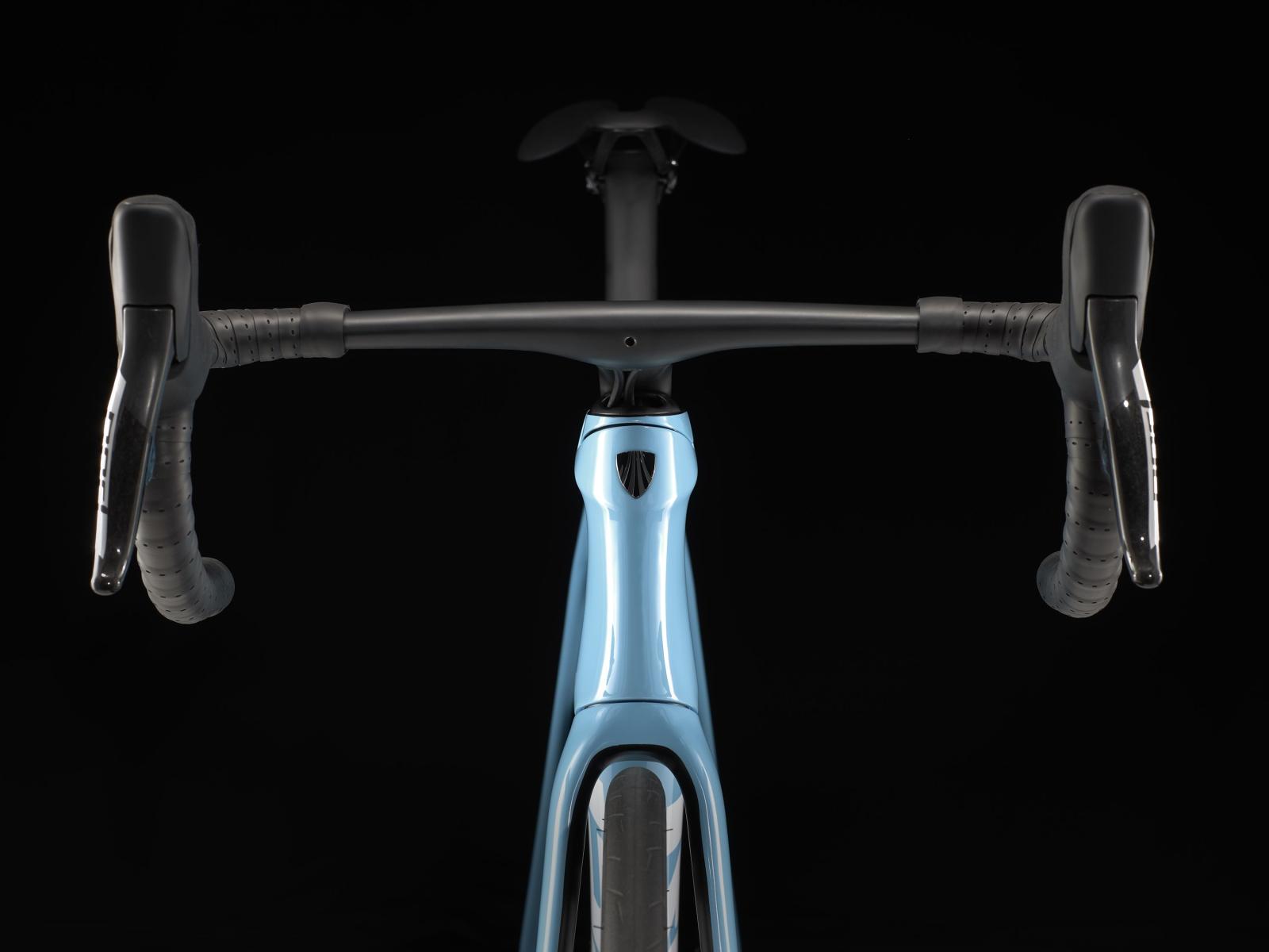 Einen ultraleichten und aerodynamischen Rahmen aus 800 Series OCLV Carbon, der weniger als 700 Gramm auf die Waage bringt, einen SRAM RED AXS 2x12-Antrieb mit drahtloser, elektronischer Schaltung, ultraleichte, schnelle und stabile Bontrager Aeolus RSL 37 Tubeless Ready-Laufräder aus OCLV Carbon, eine integrierte Aeolus RSL Lenker/Vorbau-Einheit aus OCLV Carbon, einen SRAM RED AXS-Powermeter und kraftvoll zupackende hydraulische Scheibenbremsen.
