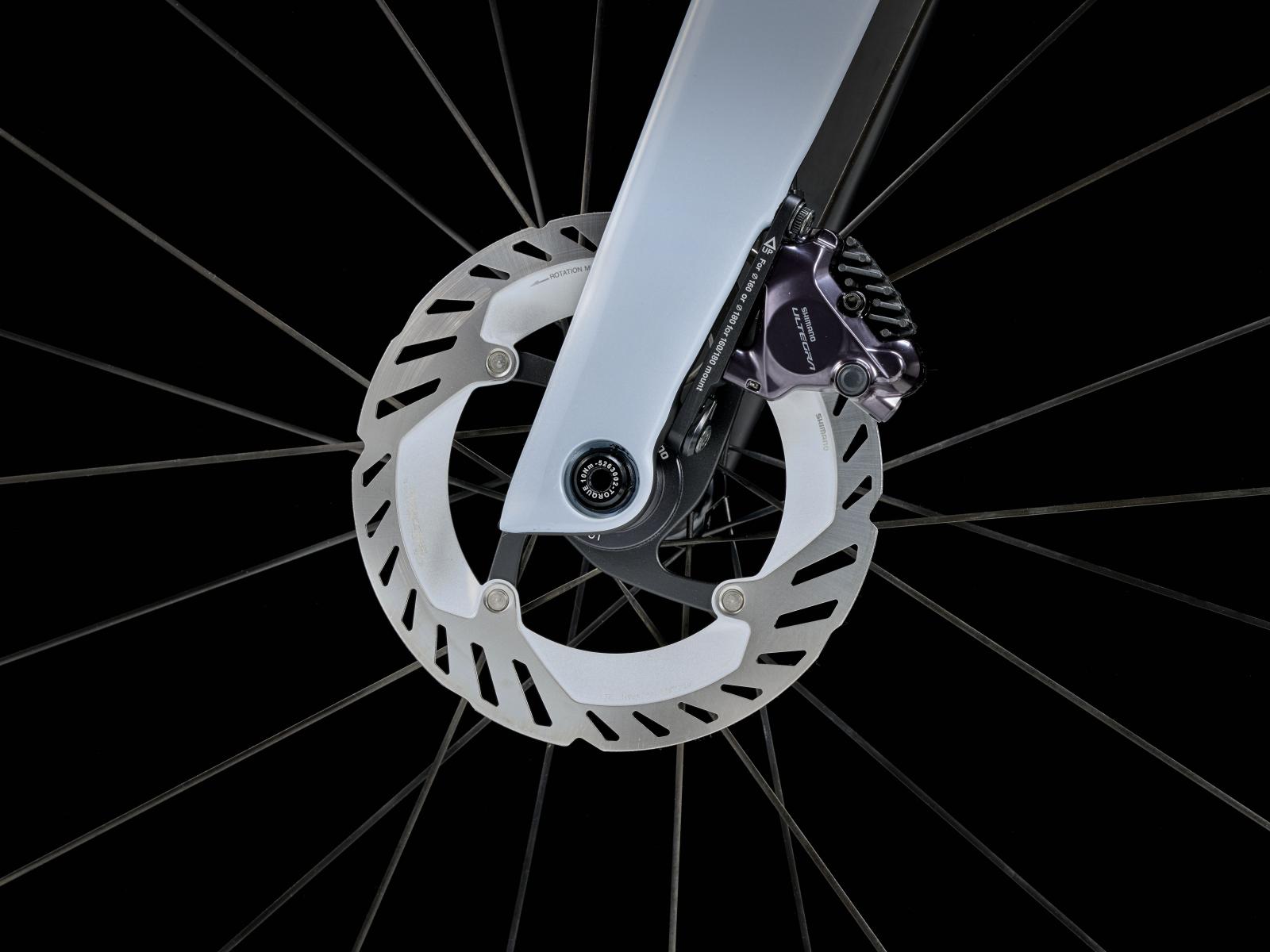 Gabel: Madone, Vollcarbon mit KVF-Profil, konischer Carbongabelschaft, interne Bremszugführung, Flat Mount-Scheibenbremsaufnahme, Carbonausfallenden, 12 x 100 mm Steckachse