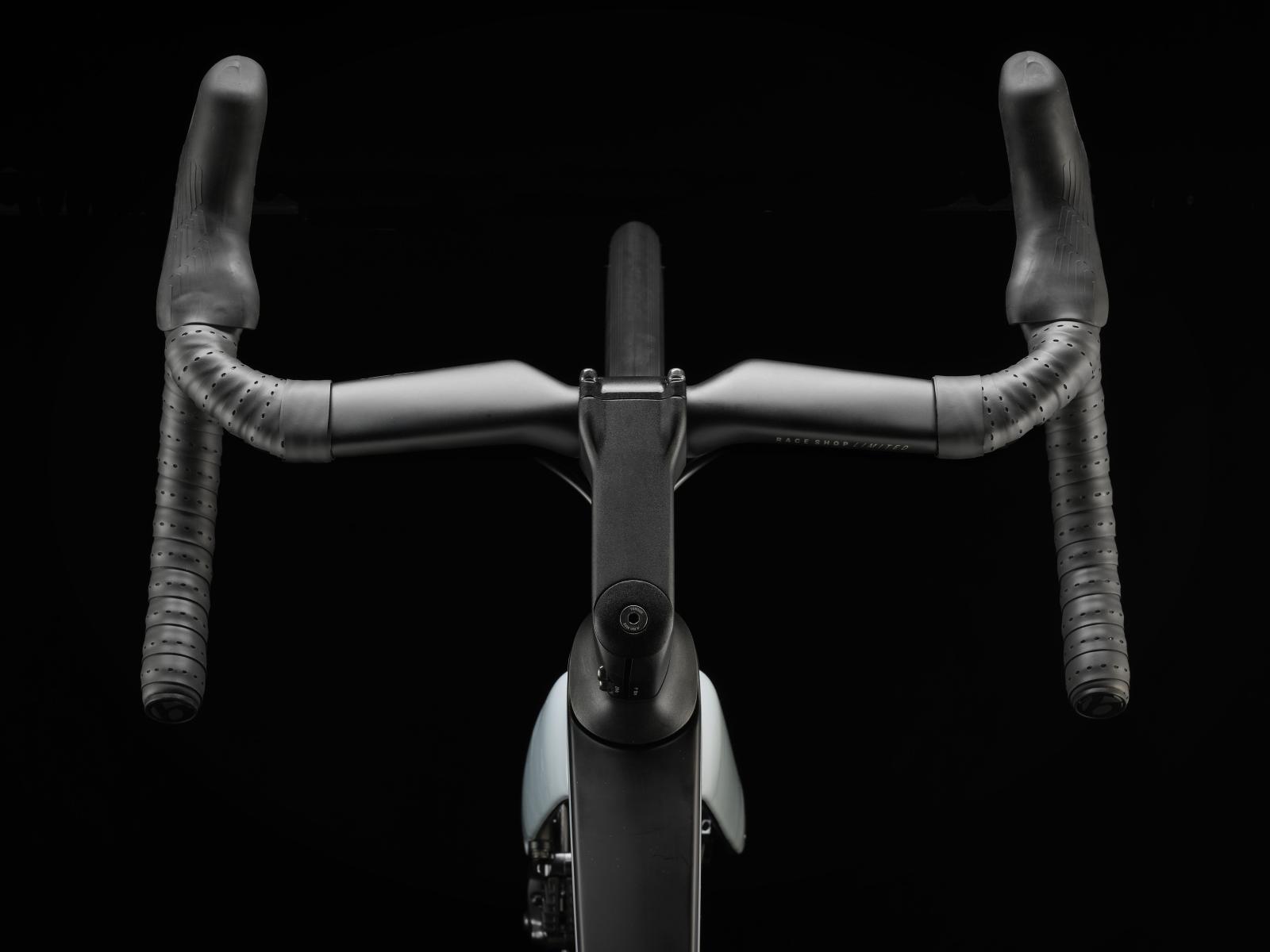 Lenker: Bontrager RSL Aero, OCLV Carbon, 31,8 mm Klemmdurchmesser, Di2-Kabelführung, 80 mm Reach, 124 mm Drop, 41 cm Oberlenkerbreite, 44 cm Unterlenkerbreite