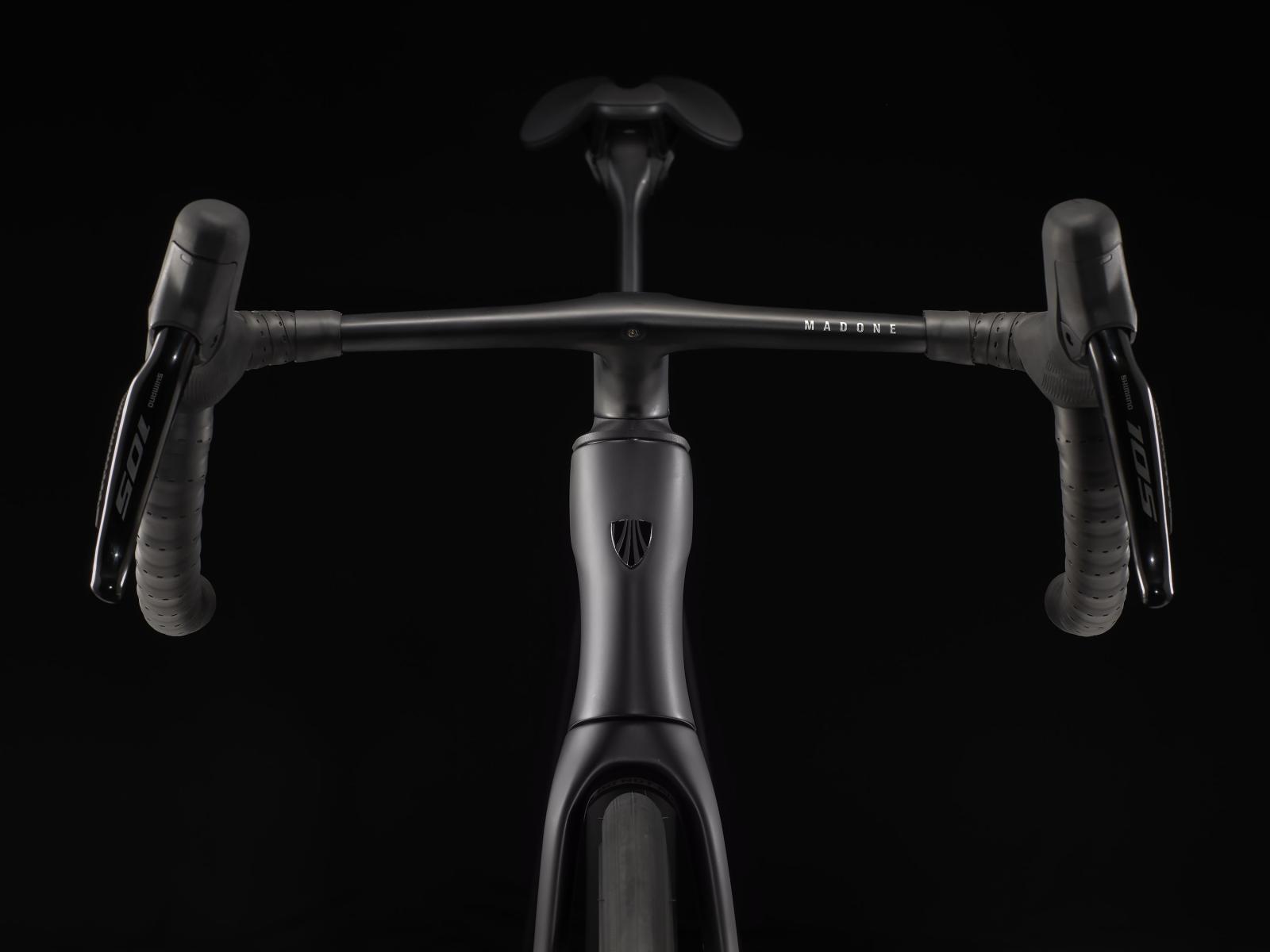 Lenker: Madone Integrierte Lenker/Vorbau-Einheit, OCLV Carbon, 80 mm Reach, 124 mm Drop, 39 cm Bremsgriffabstand, 42 cm Unterlenkerbreite, 100 mm Vorbaulänge