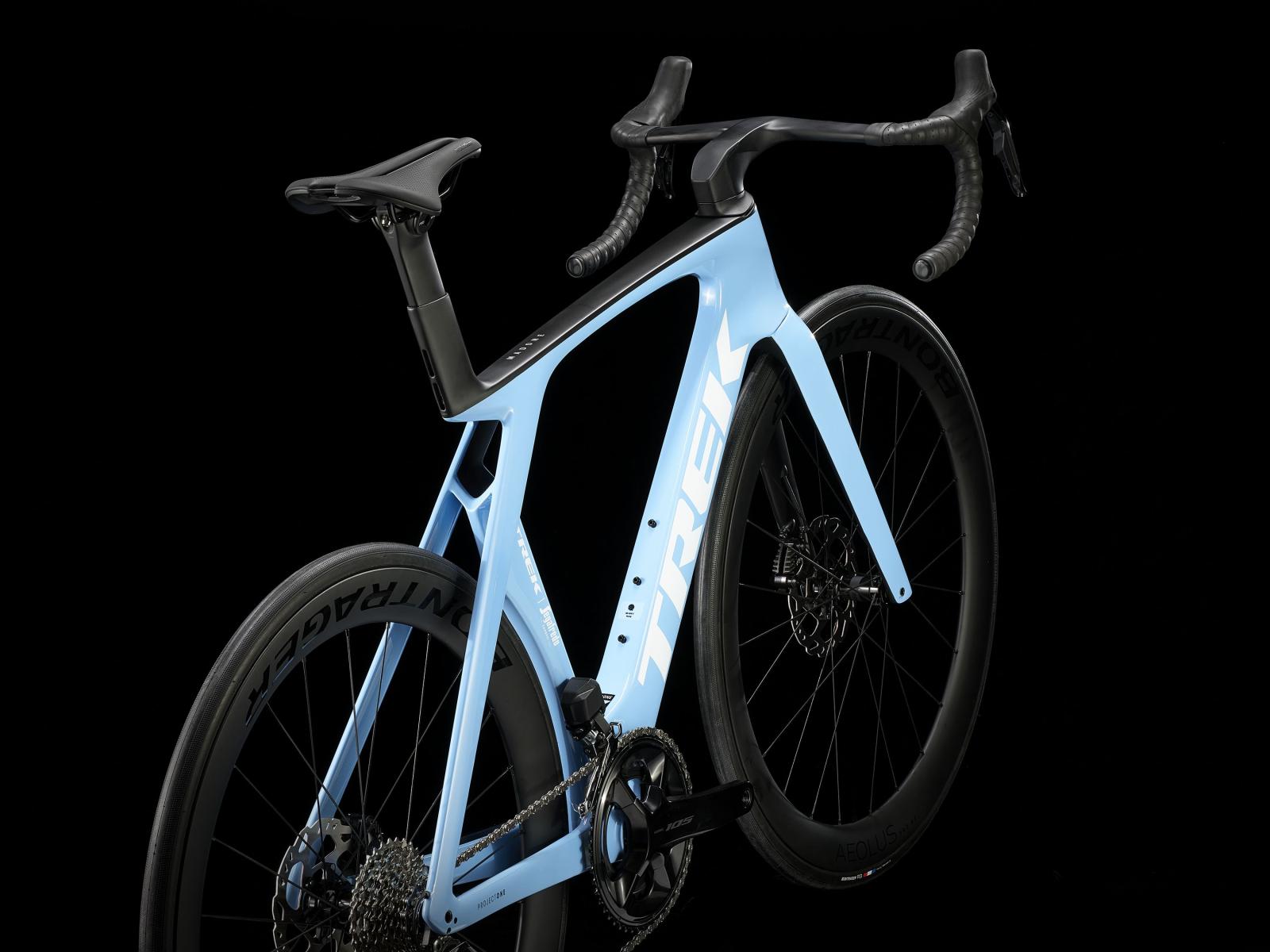 Einen leichten Rahmen aus unserem 800 Series OCLV Carbon mit aerodynamischen Rohrprofilen, aerodynamischer und vibrationsdämpfender IsoFlow-Technologie und unsichtbarer Zugführung. Außerdem bekommst du Shimanos neuen drahtlosen, elektronischen Shimano 105-Antrieb, hydraulische Flat Mount-Scheibenbremsen, Bontragers Aeolus Pro 51 Tubeless Ready-Carbonlaufräder und eine integrierte Lenker/Vorbau-Einheit aus OCLV Carbon.
