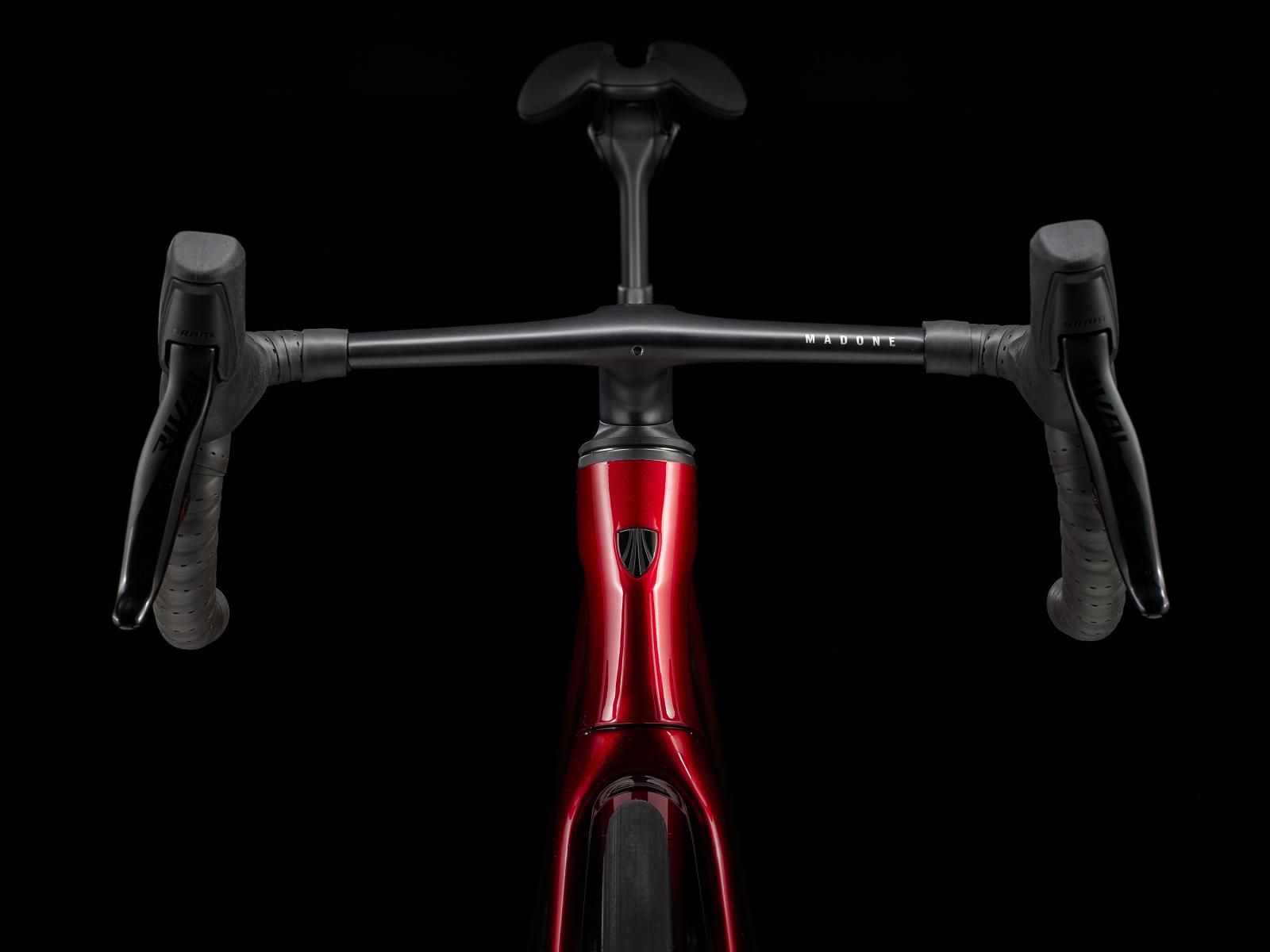 Lenker: Madone Integrierte Lenker/Vorbau-Einheit, OCLV Carbon, 80 mm Reach, 124 mm Drop, 39 cm Bremsgriffabstand, 42 cm Unterlenkerbreite, 100 mm Vorbaulänge