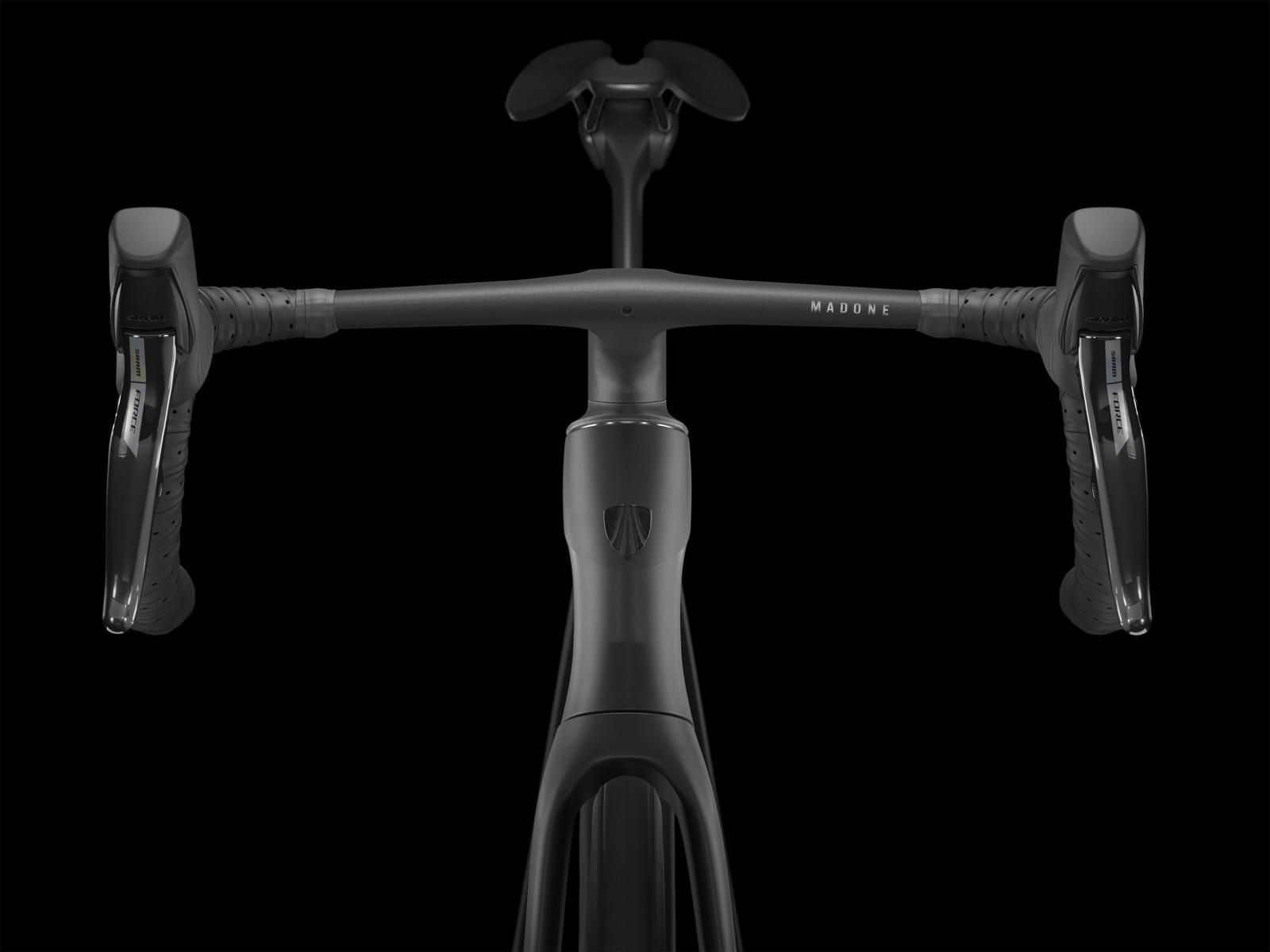 Lenker: Madone Integrierte Lenker/Vorbau-Einheit, OCLV Carbon, 80 mm Reach, 124 mm Drop, 41 cm Bremsgriffabstand, 44 cm Unterlenkerbreite, 110 mm Vorbaulänge
