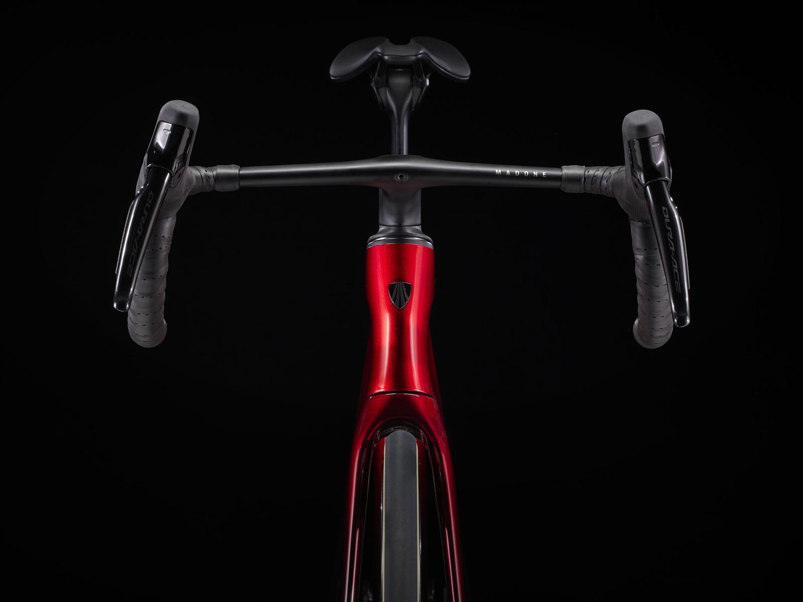Lenker: Madone Integrierte Lenker/Vorbau-Einheit, OCLV Carbon, 80 mm Reach, 124 mm Drop, 35 cm Bremsgriffabstand, 38 cm Unterlenkerbreite, 80 mm Vorbaulänge