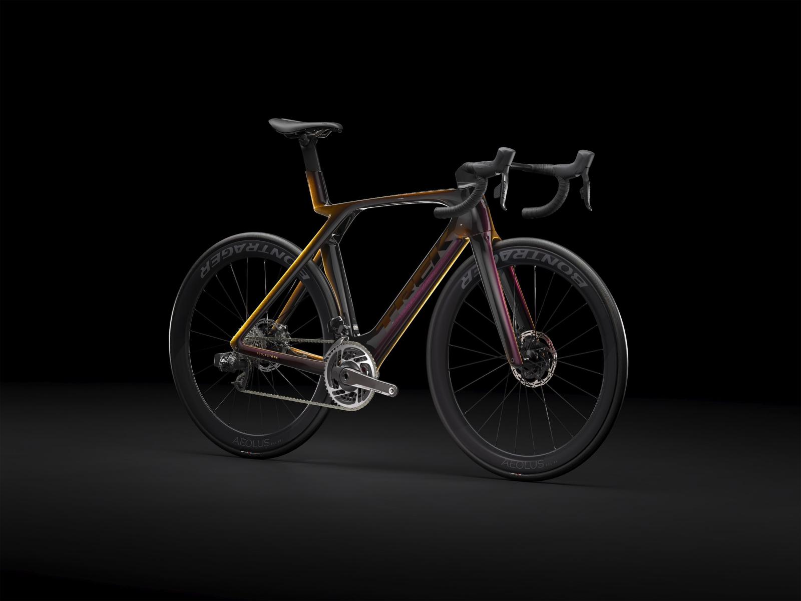 Einen leichten Rahmen aus unserem besten 800 Series OCLV Carbon mit komplett neuen aerodynamischen Kammtail-Rohrprofilen, aerodynamischer und vibrationsdämpfender IsoFlow-Technologie und unsichtbarer Zugführung. Außerdem bekommst du einen drahtlosen, elektronischen SRAM RED AXS-Antrieb, hydraulische Flat Mount-Scheibenbremsen, einen Kurbelsatz mit integriertem Powermeter zur Überwachung deiner Performance, Bontragers Aeolus RSL 51 Tubeless Ready-Carbonlaufräder und eine integrierte Lenker/Vorbau-Einheit aus OCLV Carbon.