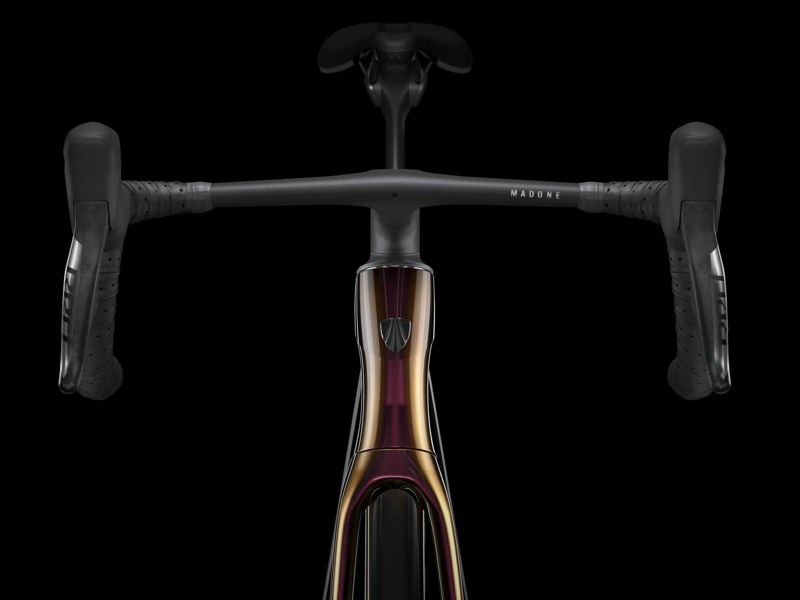 Lenker: Madone Integrierte Lenker/Vorbau-Einheit, OCLV Carbon, 80 mm Reach, 124 mm Drop, 39 cm Bremsgriffabstand, 42 cm Unterlenkerbreite, 90 mm Vorbaulänge