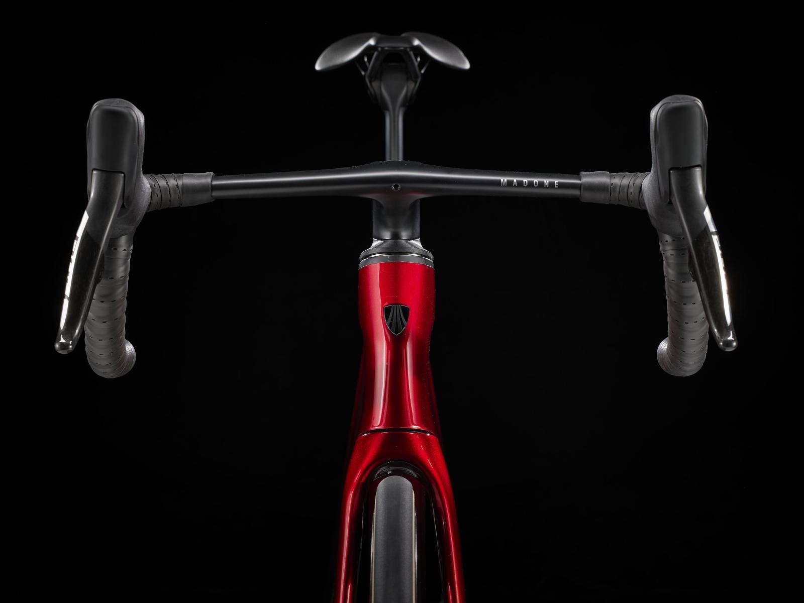 Lenker: Madone Integrierte Lenker/Vorbau-Einheit, OCLV Carbon, 80 mm Reach, 124 mm Drop, 41 cm Bremsgriffabstand, 44 cm Unterlenkerbreite, 110 mm Vorbaulänge
