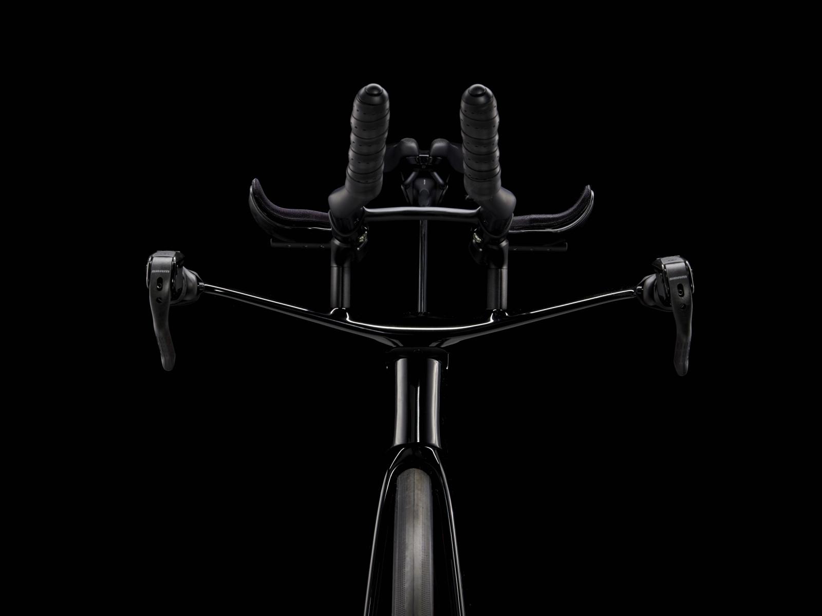 Einen ultraleichten Rahmen aus 800 Series OCLV Carbon, windschnittige Rohre mit Kammtail Virtual Foil-Profil (KVF), eine Speed Concept-Carbongabel mit aerodynamischem Profil, vibrationsdämpfendes IsoSpeed, integrierte aerodynamische Aufbewahrungslösungen für Verpflegung, Flüssigkeit und Pannenkit, einen drahtlosen, elektronischen SRAM Rival AXS 12fach-Antrieb mit SRAM AXS-Blips-Schalthebeln für eine aerodynamische Sitzposition beim Schalten, einen Rival AXS-Powermeter, einen vollständig integrierten Lenker samt Vorbau, einen triathlonspezifischen Bontrager Hilo Comp-Sattel für eine aggressive Aero-Sitzposition, zuverlässig zupac